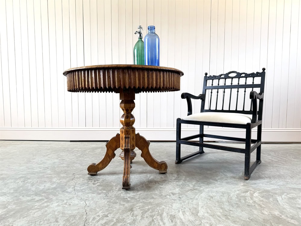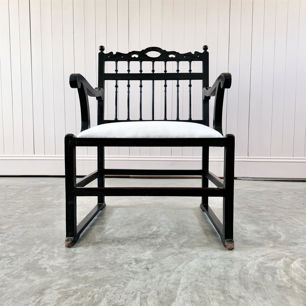 Produced in the North Country out of walnut which has been ebonised. This chair has the most stunning patina where the black has been rubbed off over 100's of years naturally polishing the walnut. The carvings and details and feet also have that lovely rounded feel produced by years of use.