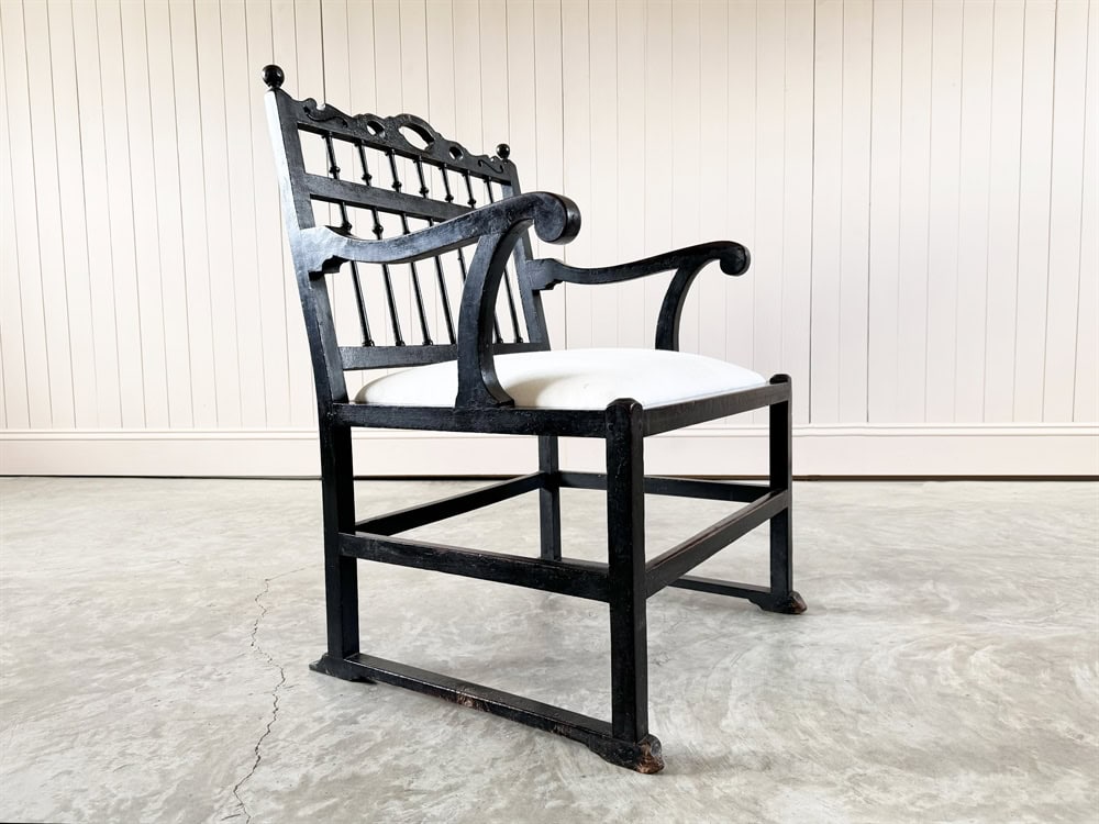 Circa 1760-80 this antique chair is also know as a 'Drunkards' chair due to its wide seat to allow lolling ....
