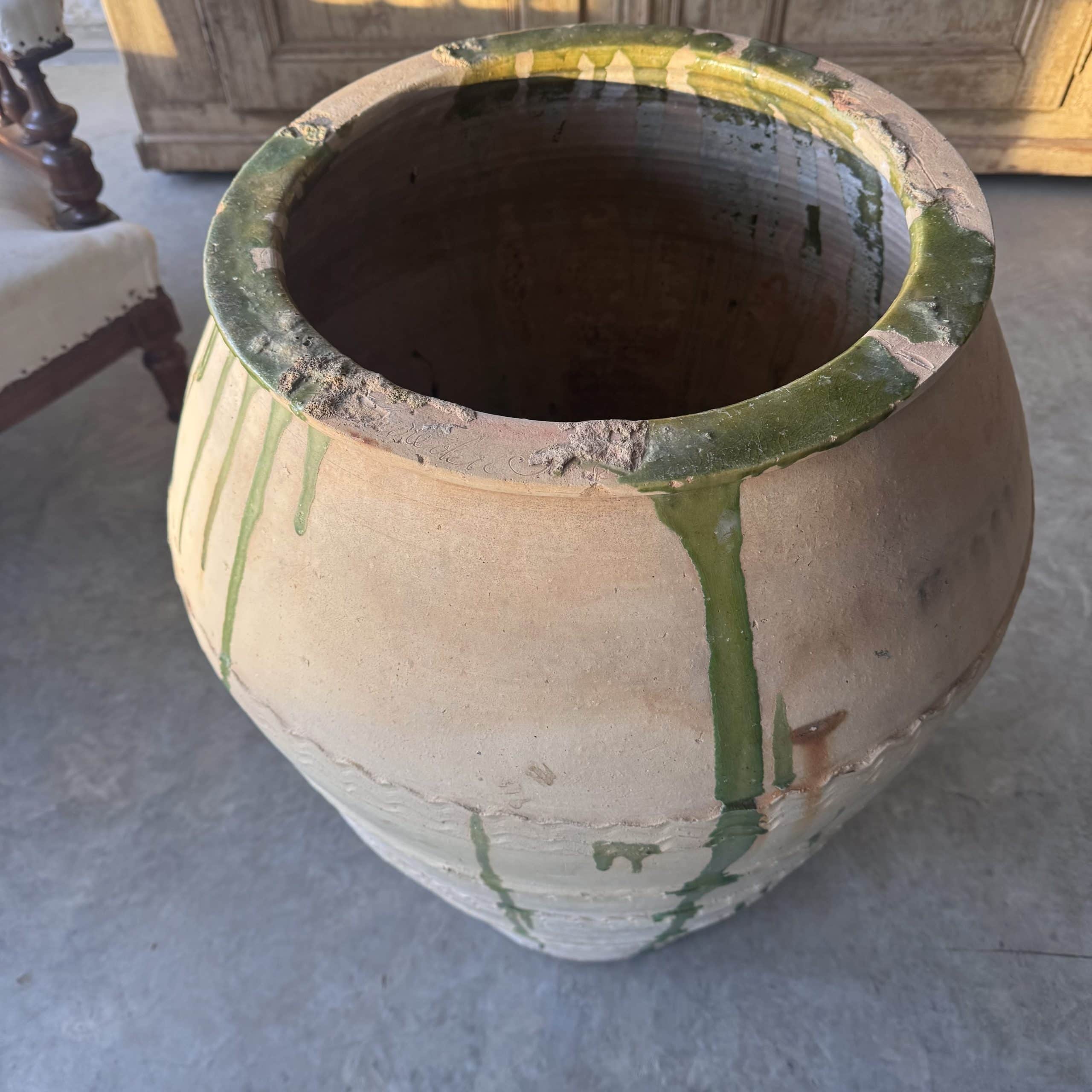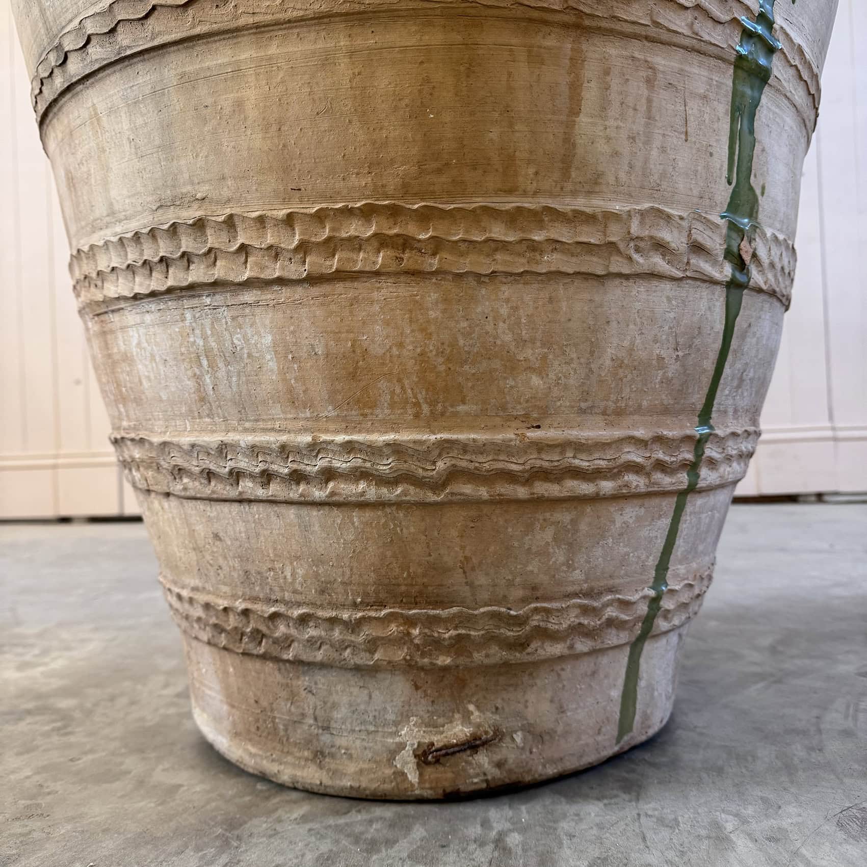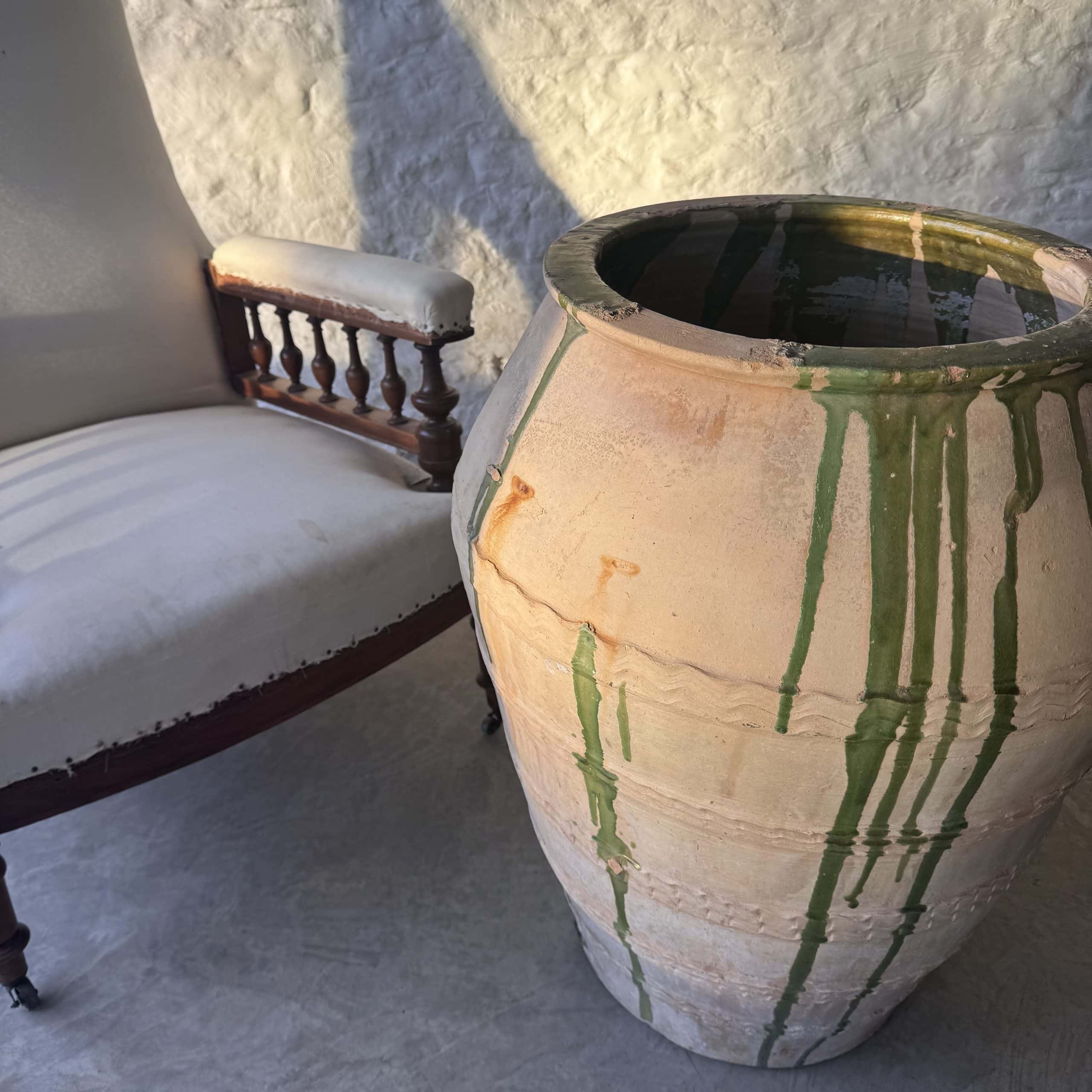 This antique terracotta has come from the Castellon region of Northern Spain and is the style of the region. Used for storing Olives.