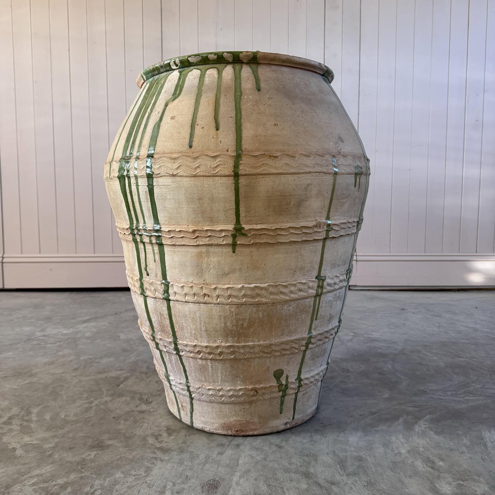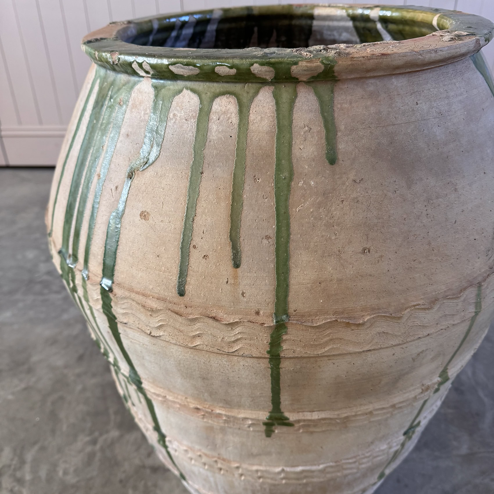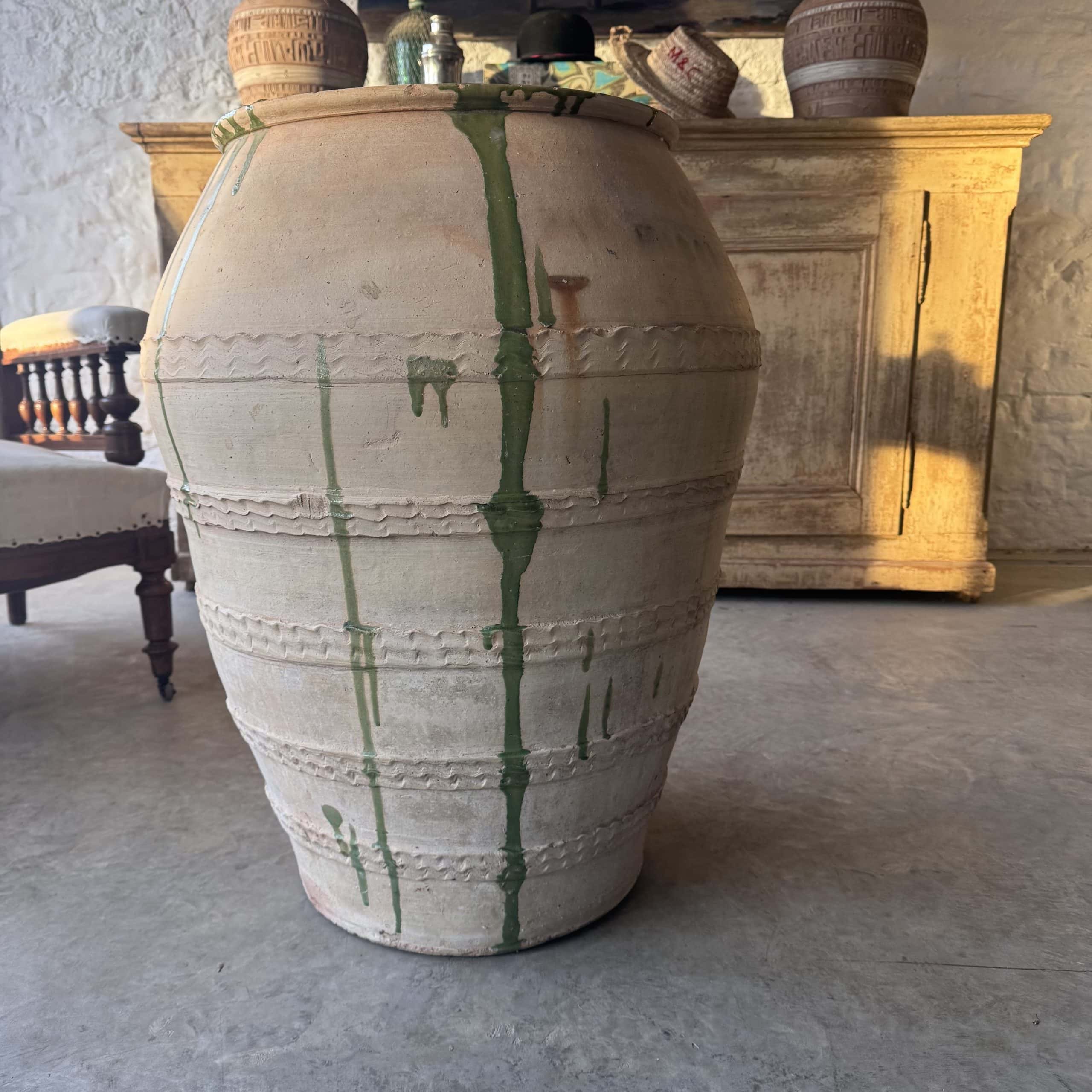 This antique terracotta has come from the Castellon region of Northern Spain and is the style of the region. Used for storing Olives.