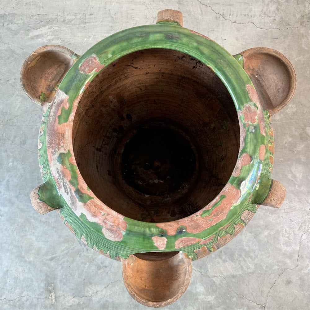 This antique strawberry pot is an early 20th century Spanish terracotta planter from Seville, designed with multiple pockets for growing strawberries.