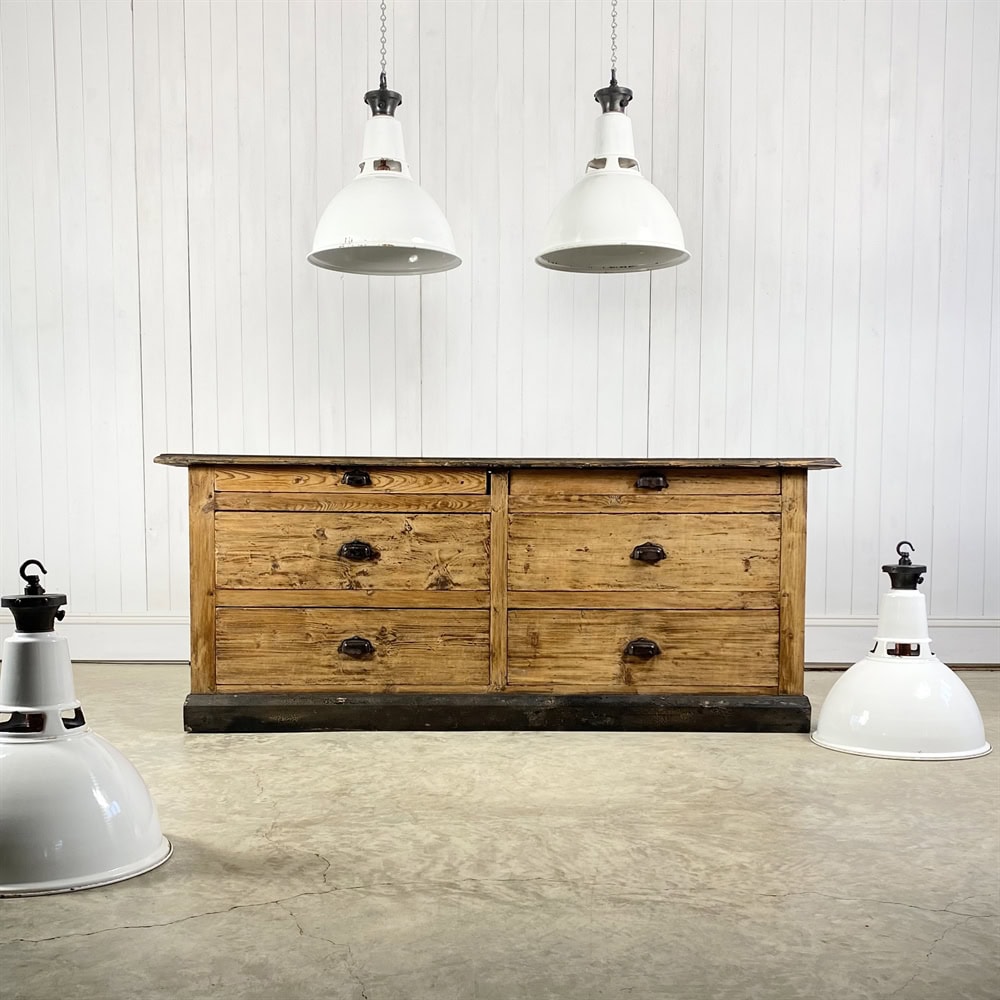 This run of vintage factory lights was sourced from the Shell Refinery in Carrington, Manchester.