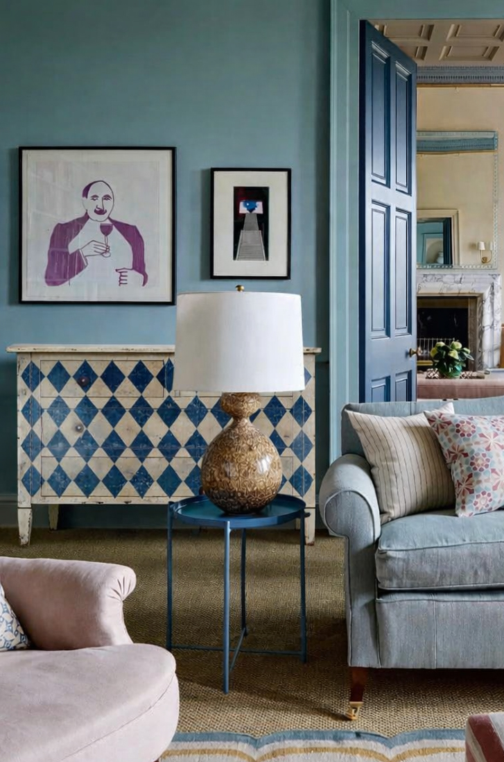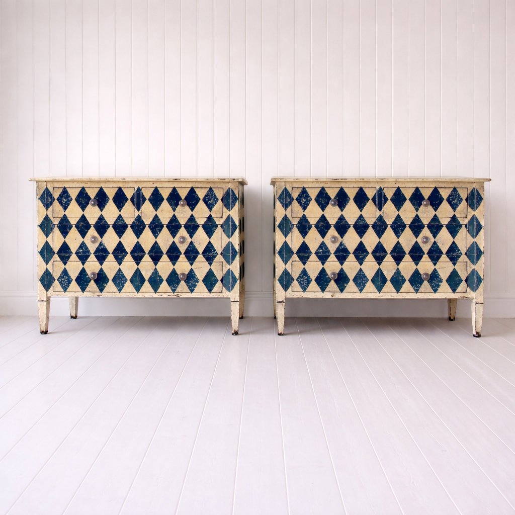 Siffkey Blue Bespoke Harlequin Painted Chest of Drawers