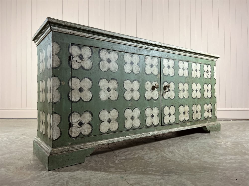 Based on an Italian harlequin design we are now having these cupboards made locally in the Cotswolds and painting the designs in-house.