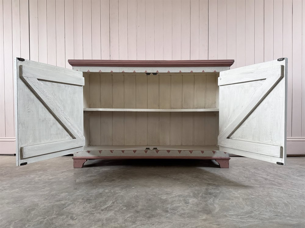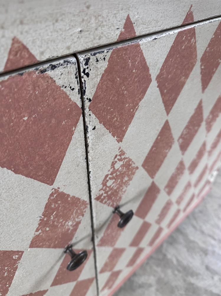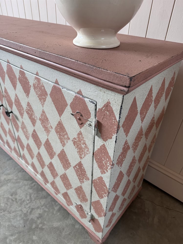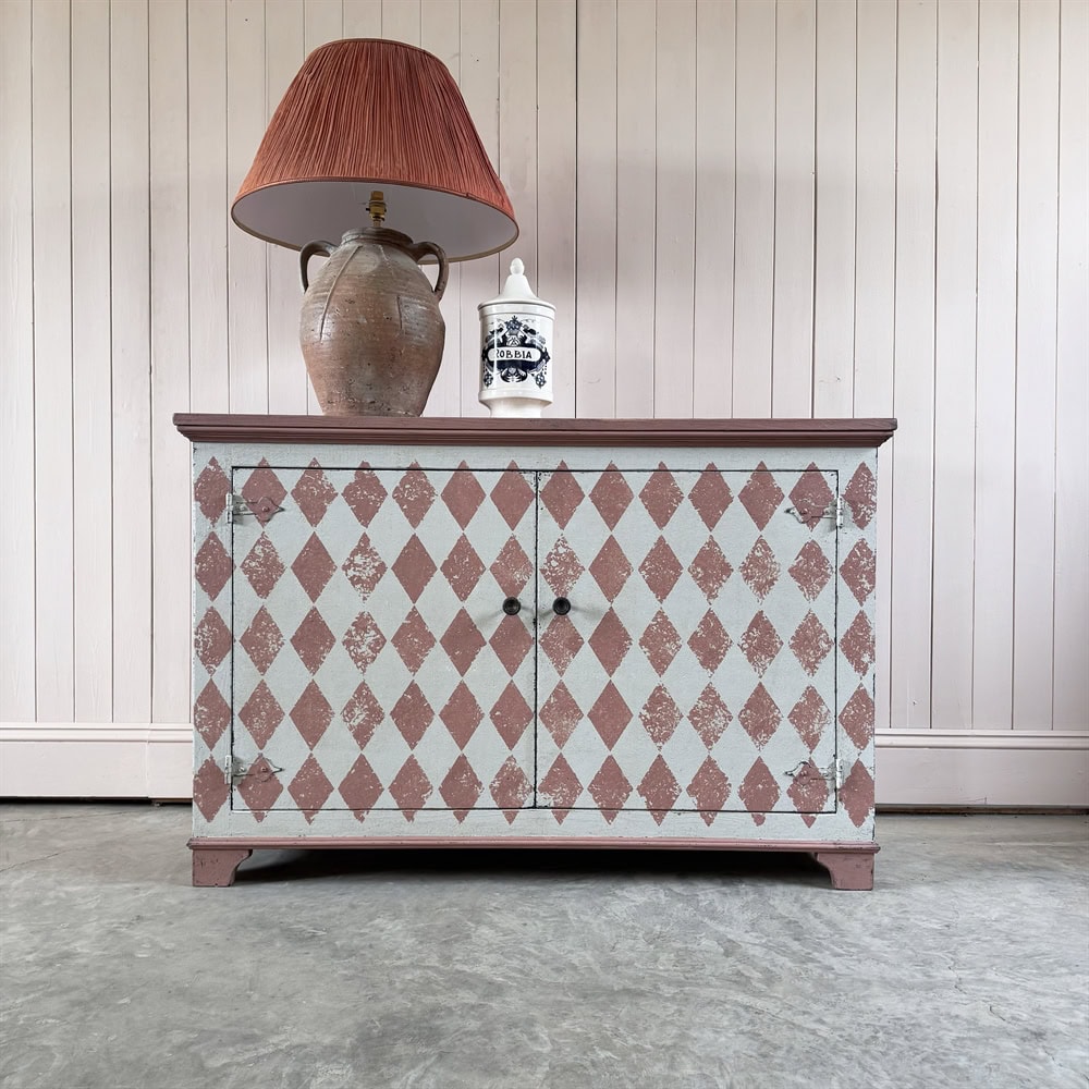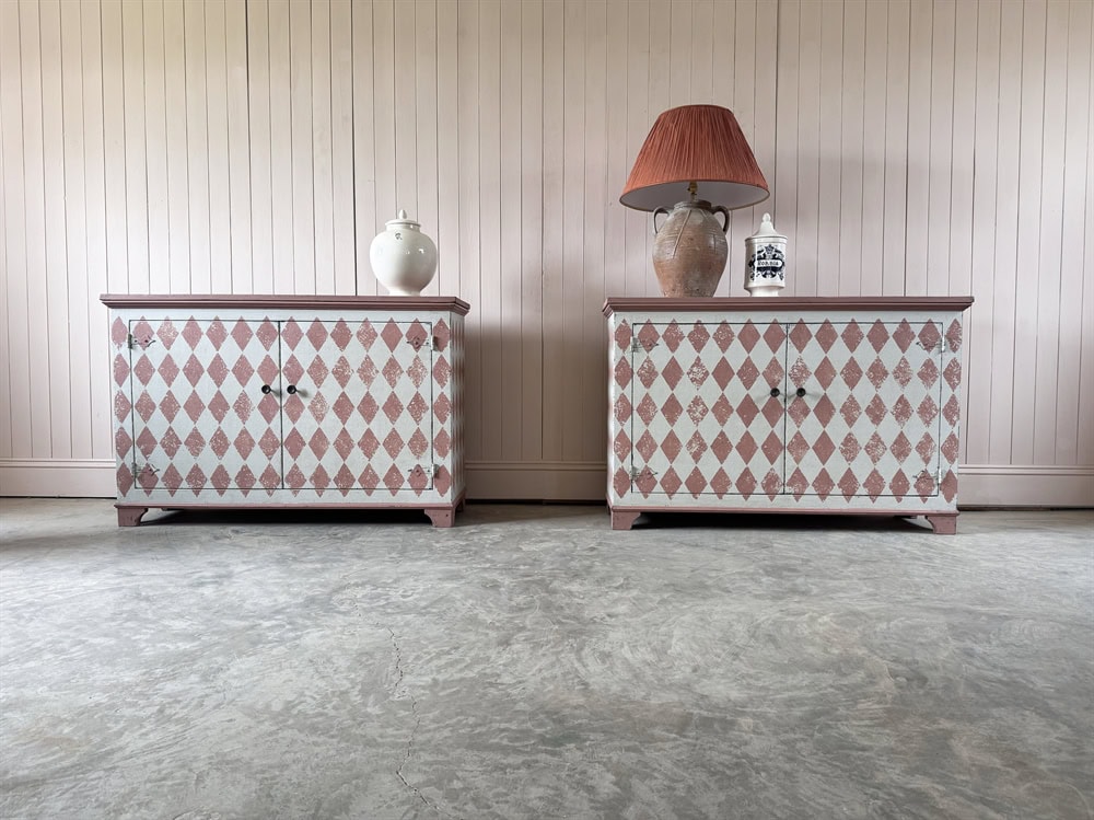 Based on an Italian design we are now having these cupboards made locally in the Cotswolds and painting the designs in-house.