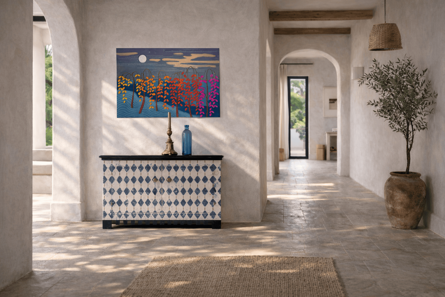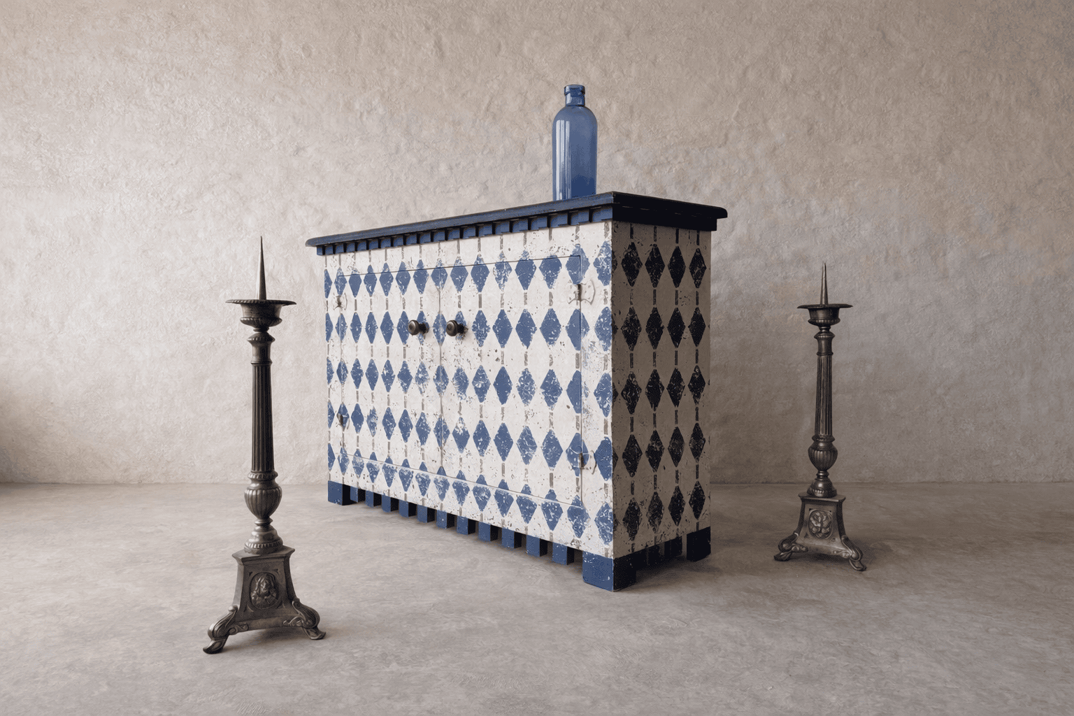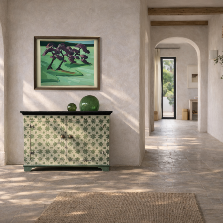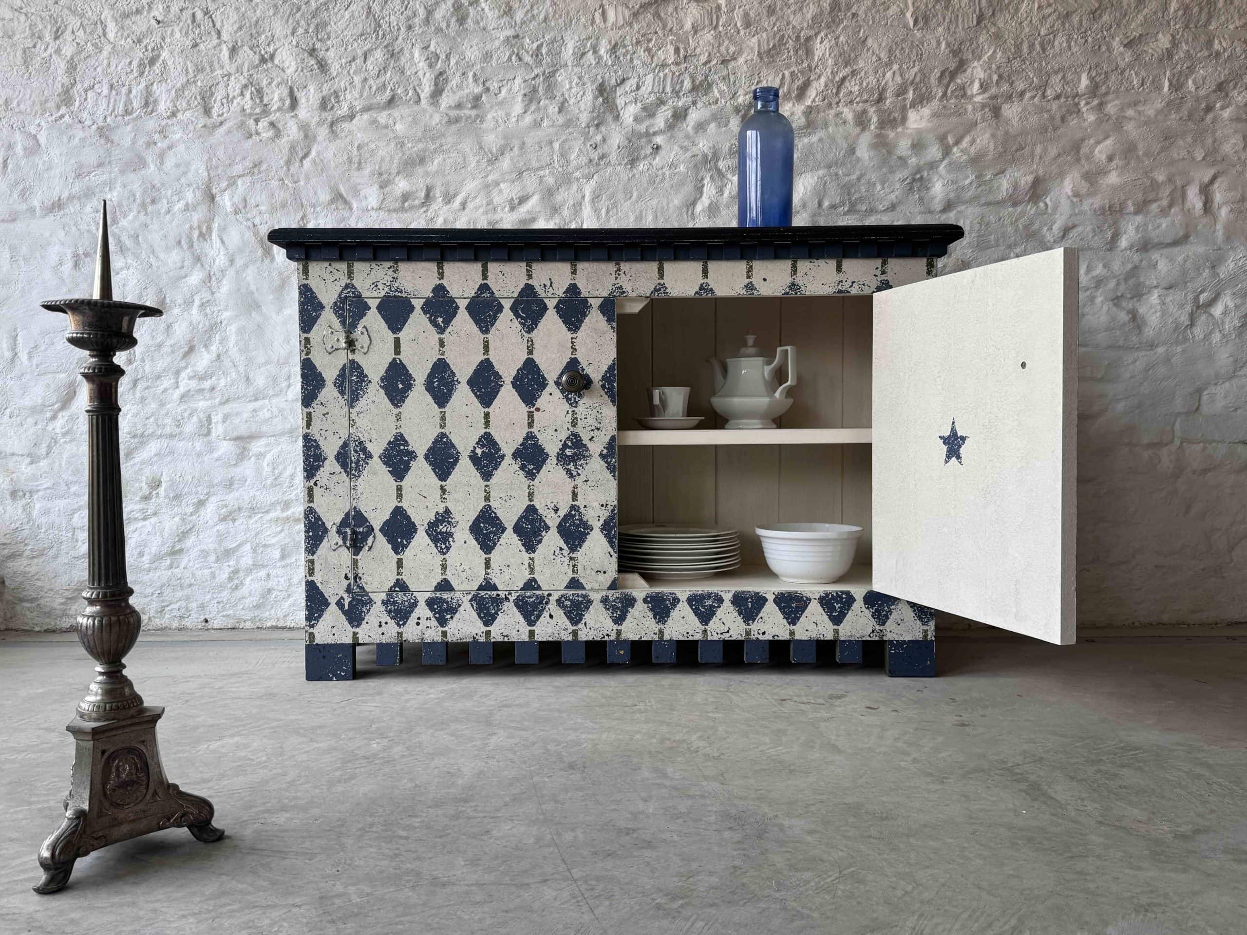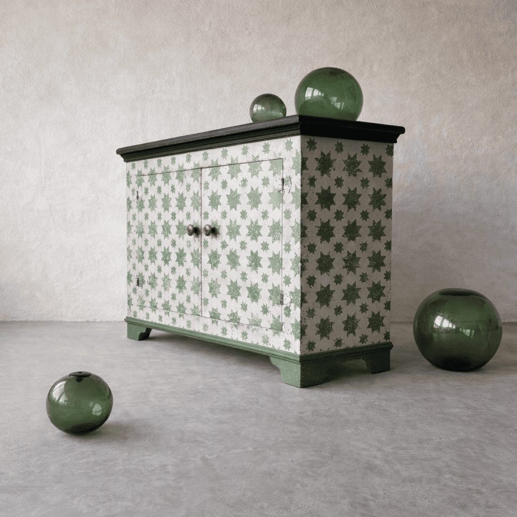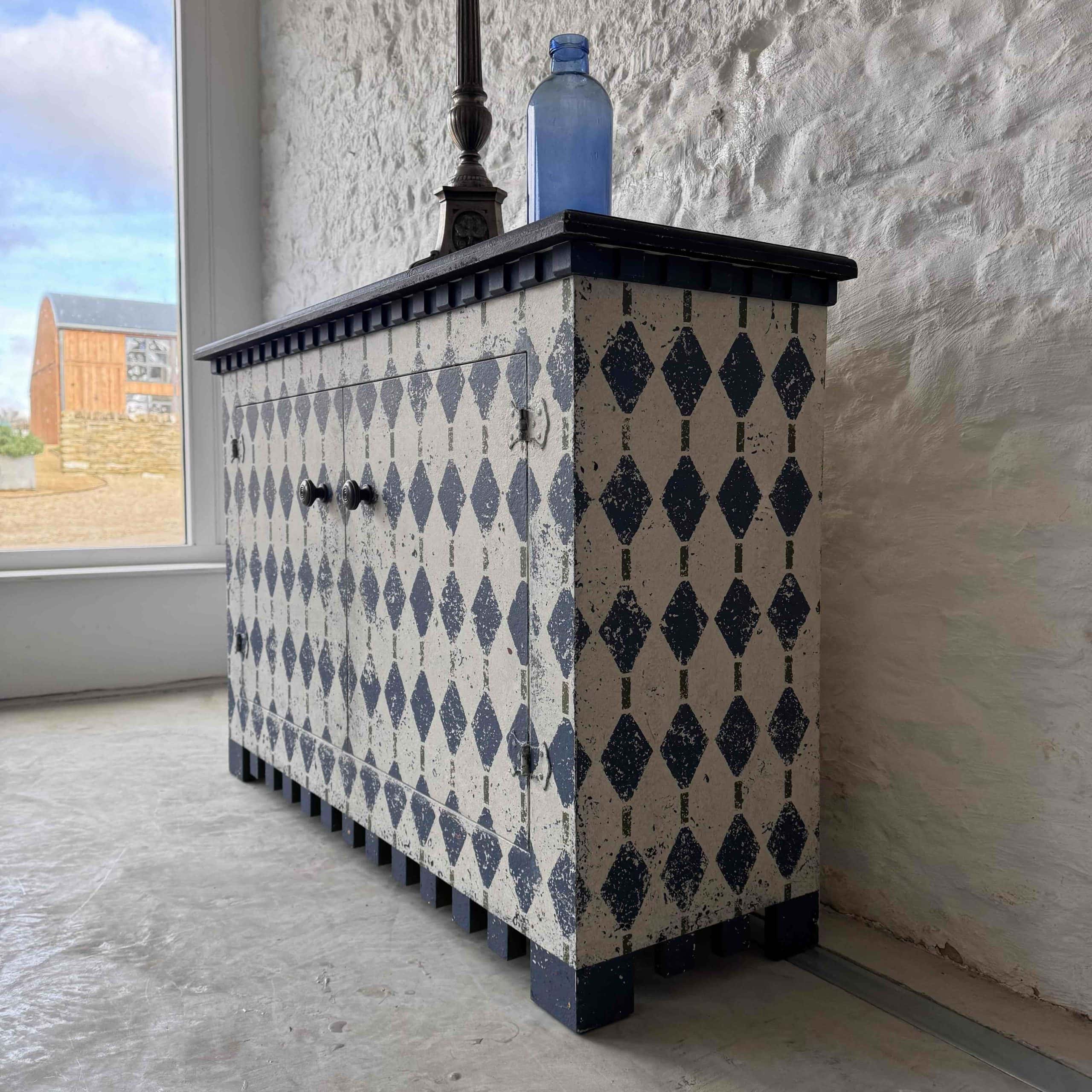 Based on an Italian design we are now having these cupboards made locally in the Cotswolds and painting the designs in-house.