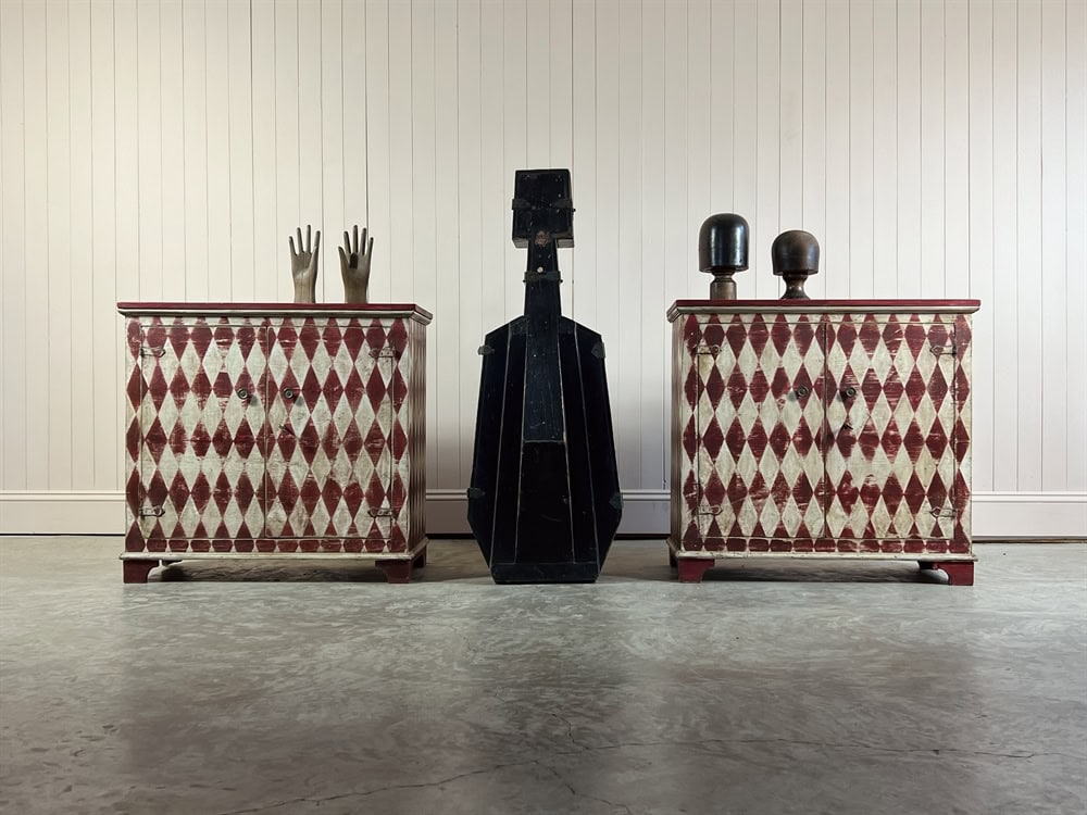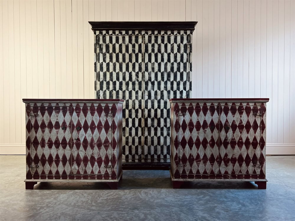 Based on an Italian harlequin design we are now having these sideboards made locally in the Cotswolds and painting the designs in-house.