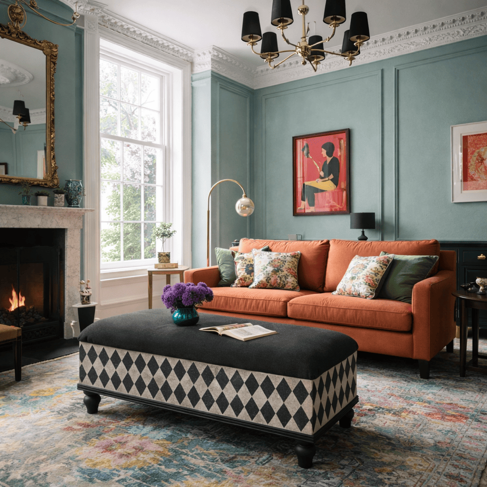 B & W Harlequin Ottoman