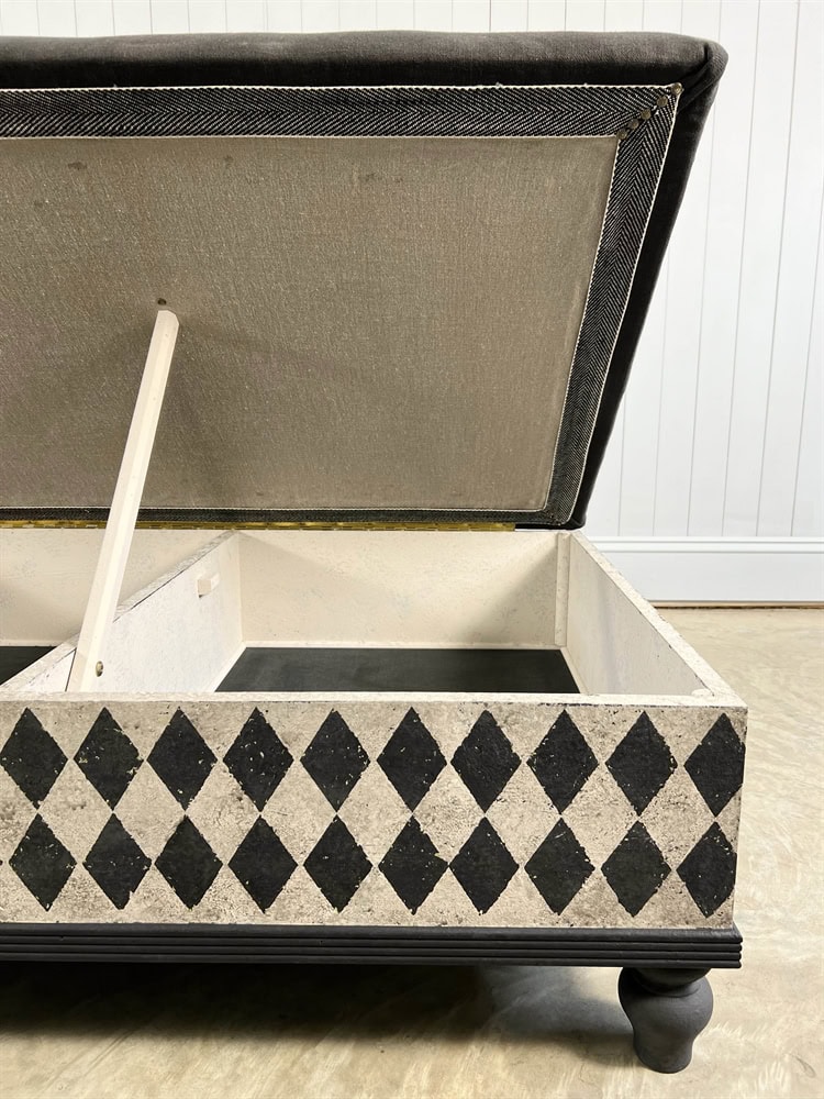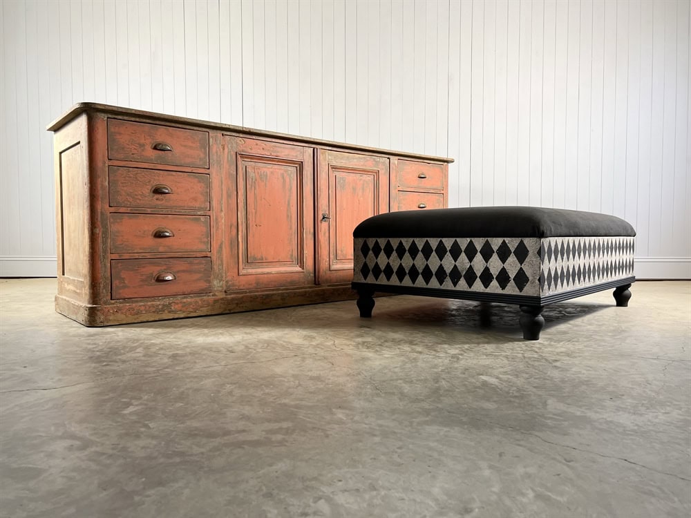 Handmade in-house by yours truly in our workshop in the Cotswolds. The inspiration for these benches came from an antique Italian Ottoman which we bought and sold with a similar construction.