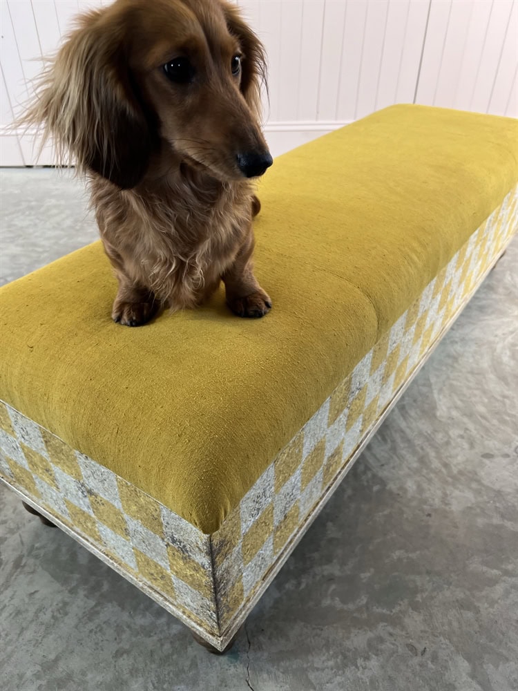 Handmade in-house by yours truly in our workshop in the Cotswolds. A one-off piece. The inspiration for these ottomans came from an antique Italian Ottoman which we bought and sold with a similar construction.