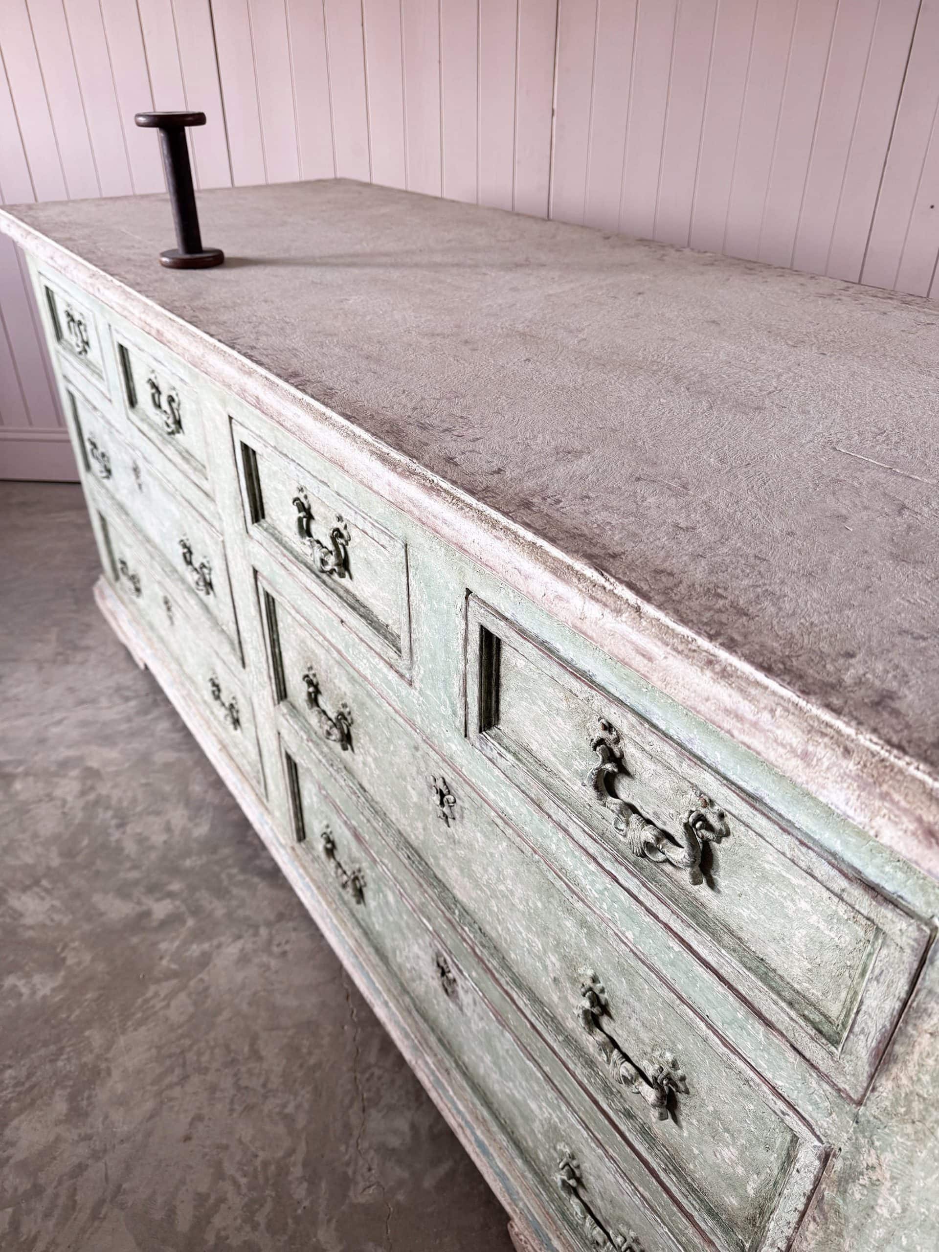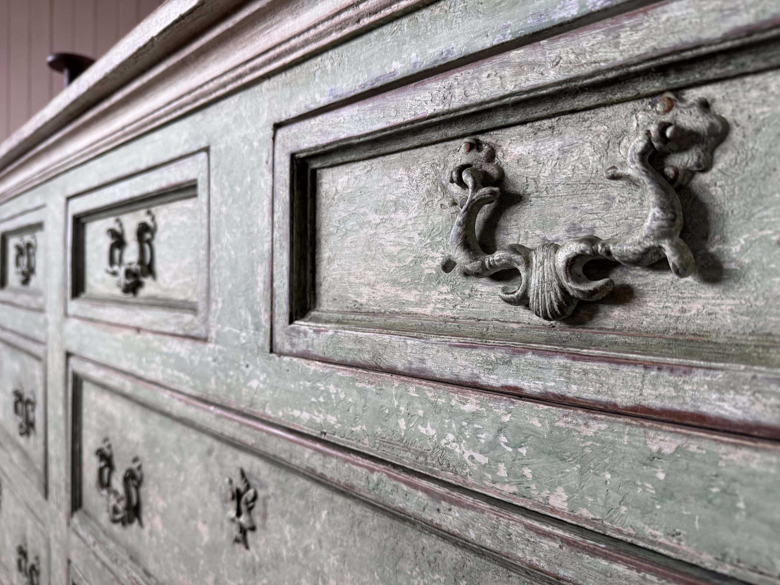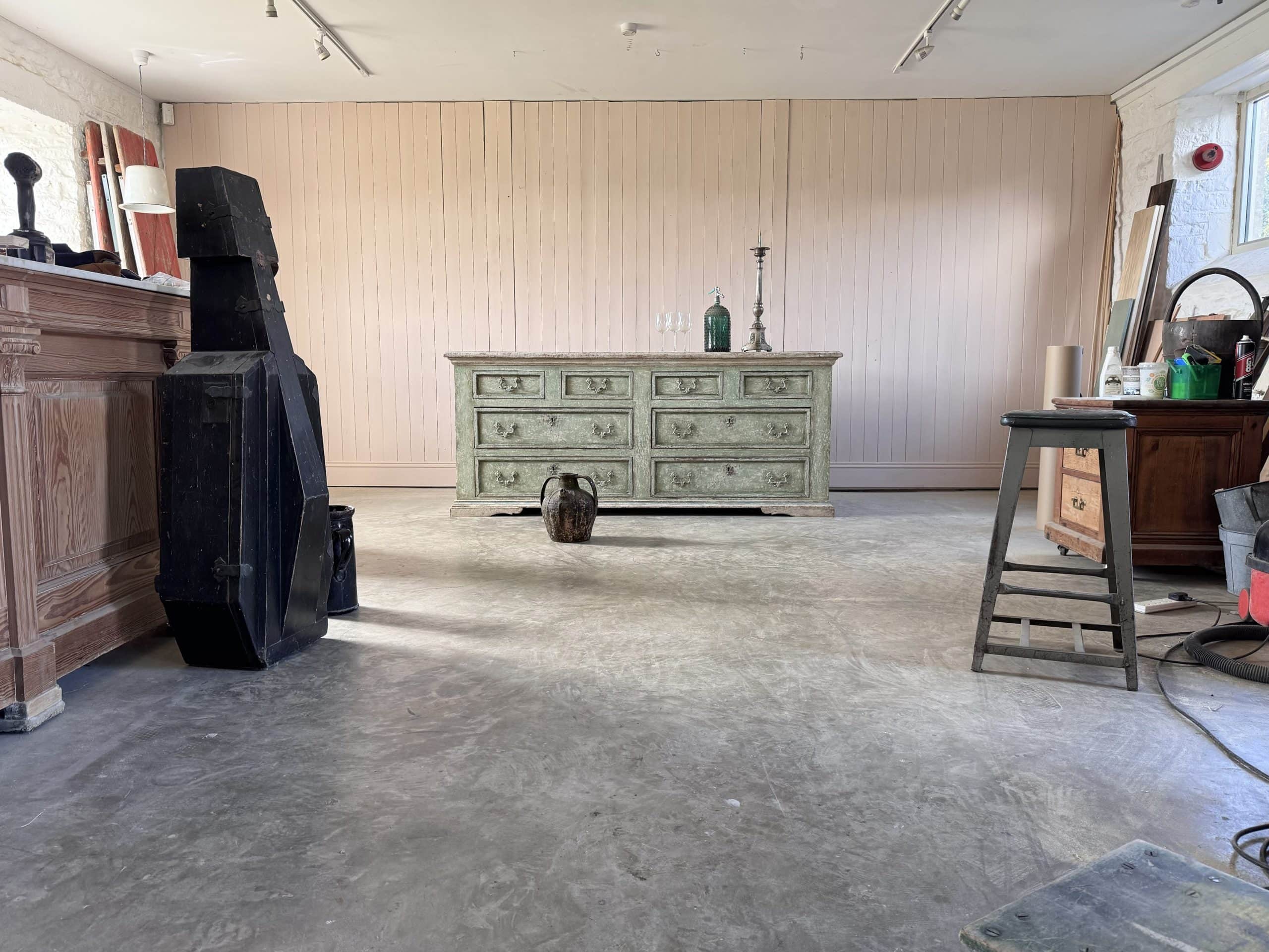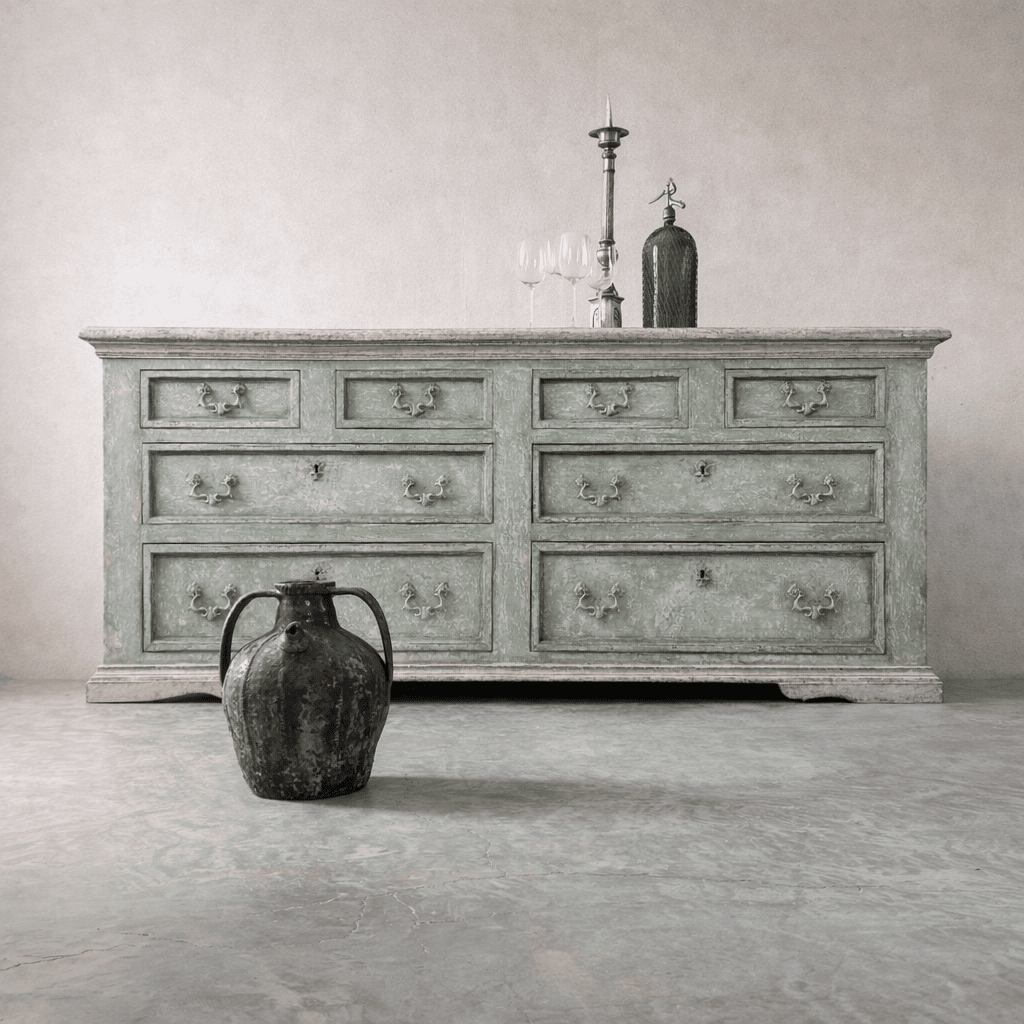 This has been put together using various antique components such as the large drawers and the mouldings.
