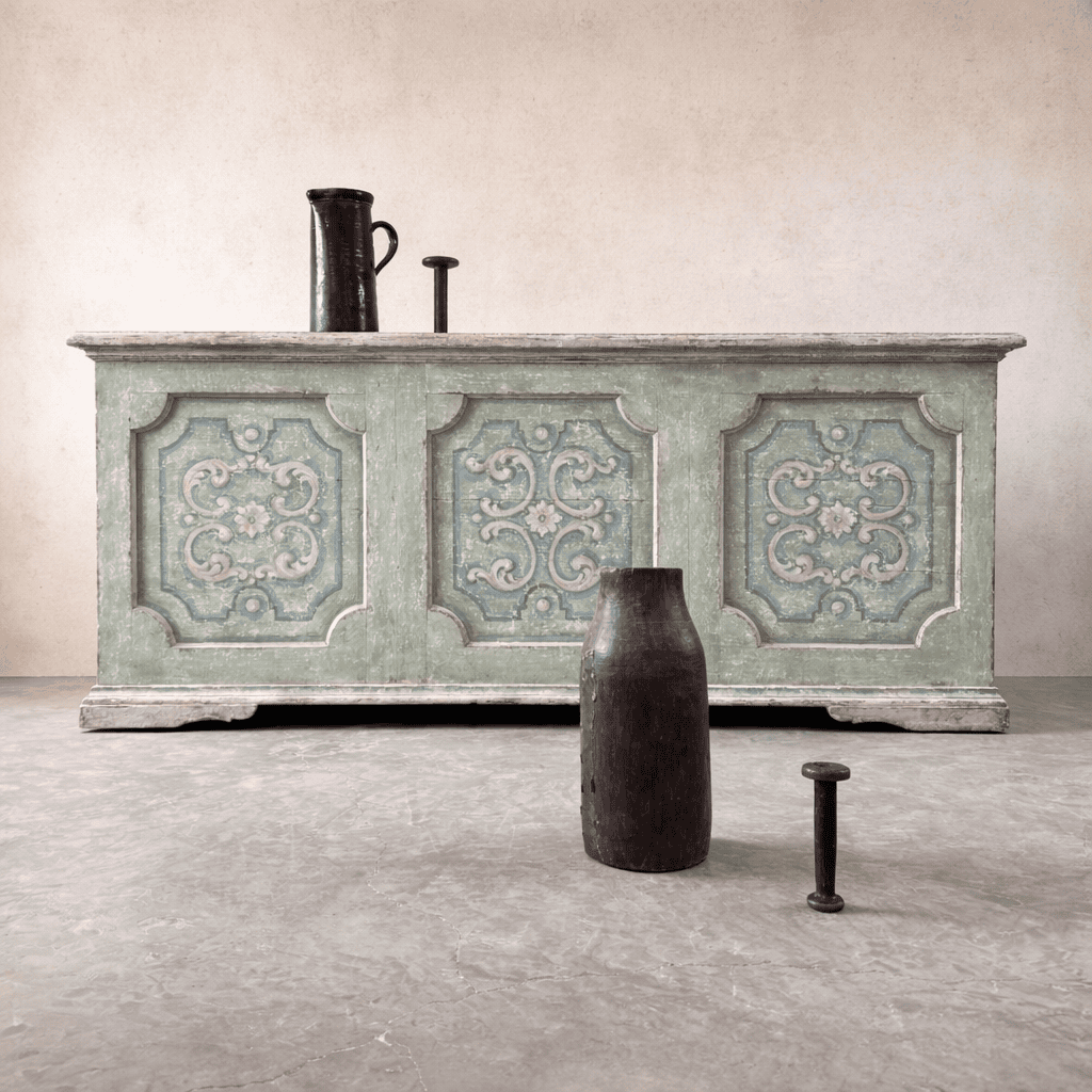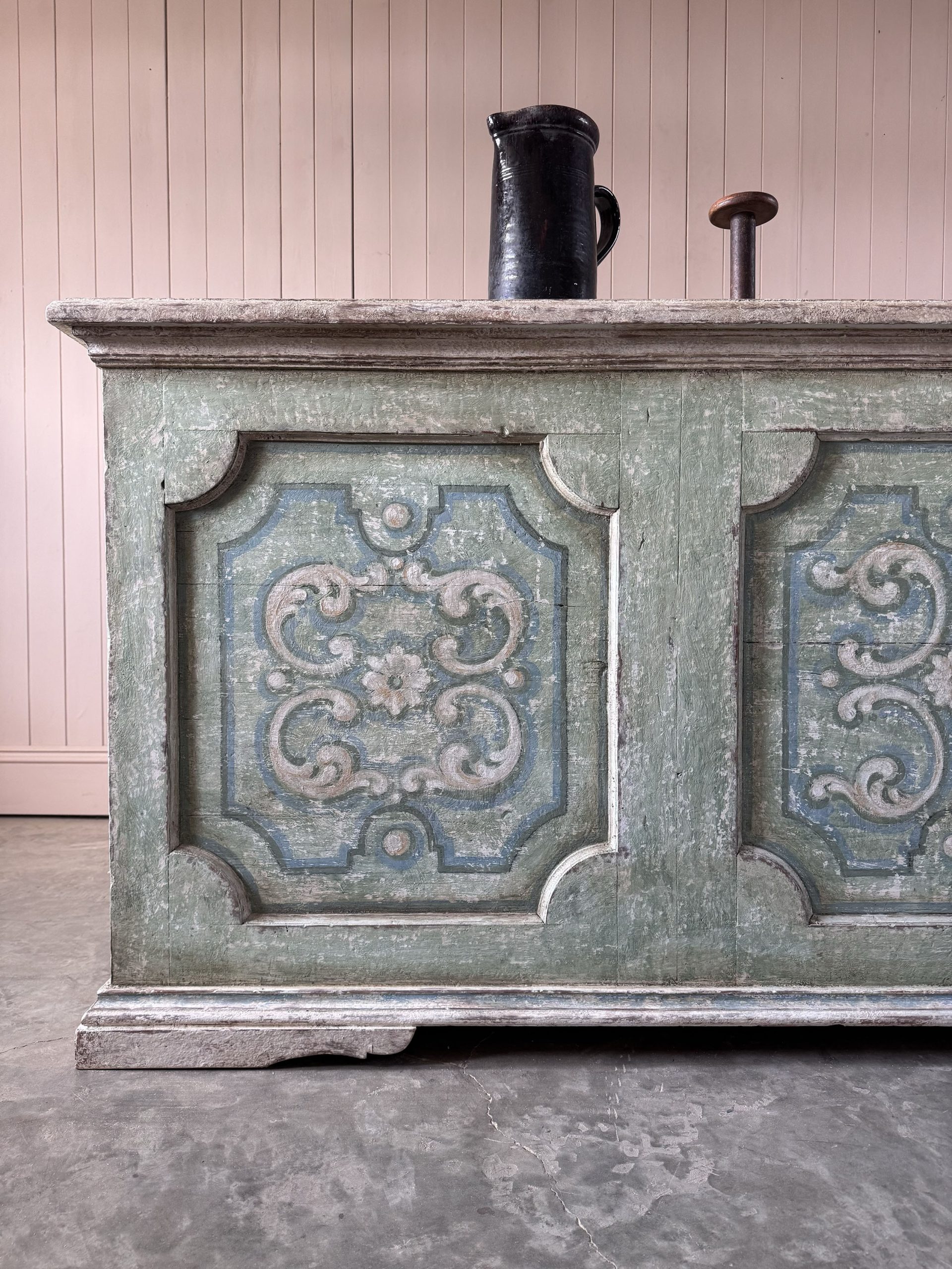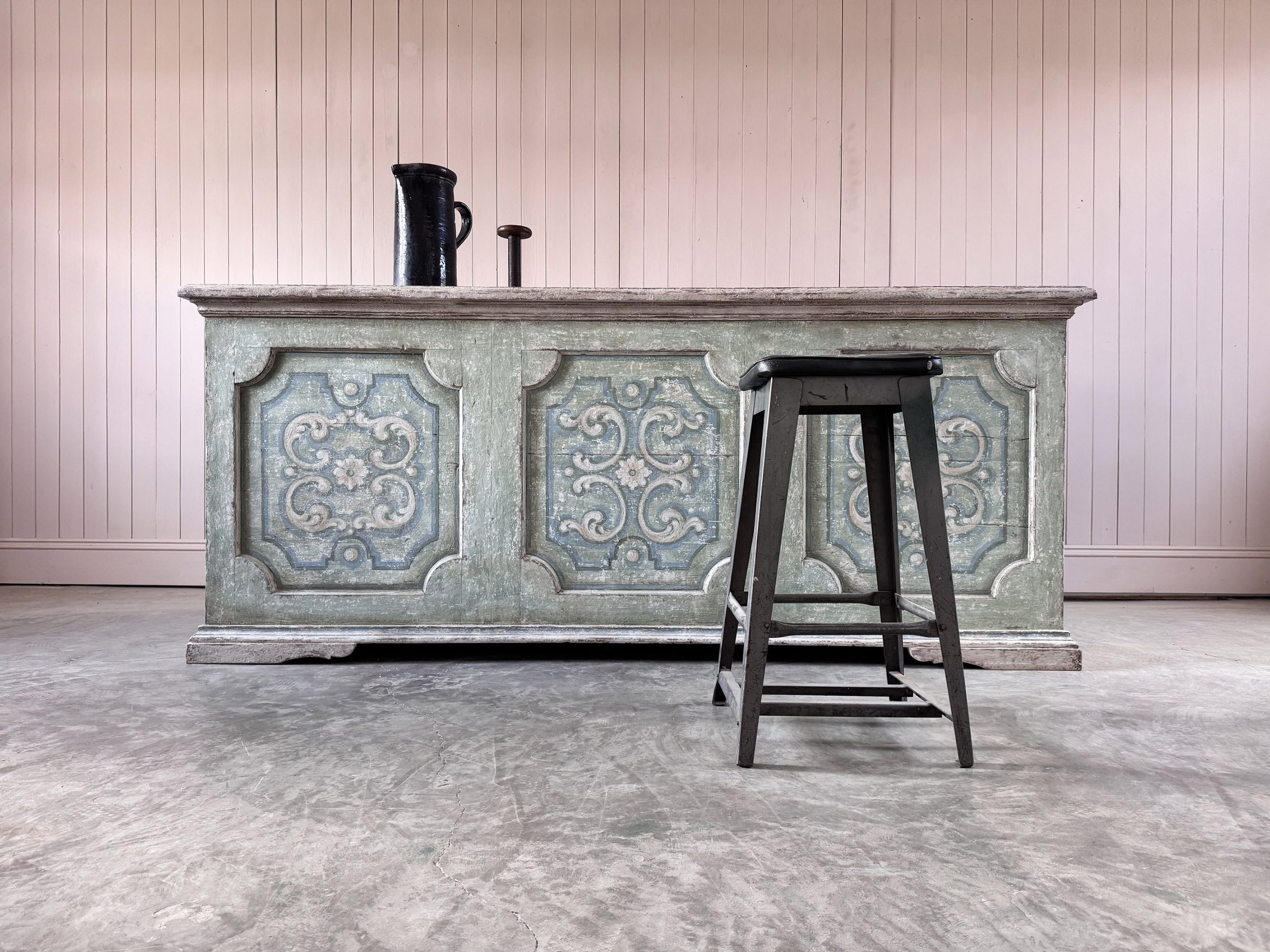 We are very excited about this fantastic kitchen island what a wonderful and unique piece! It has been constructed and hand painted by our very talented friend Fabrizio and his lovely wife Fiorenza. They have a studio in Florence and are real artisans.