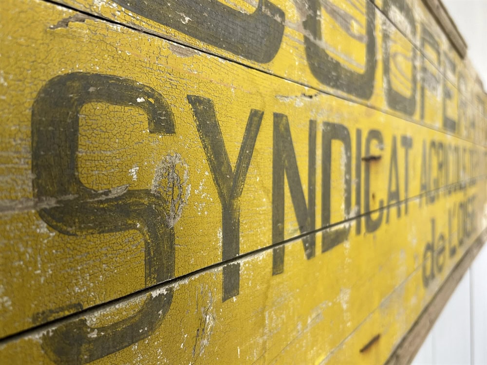 Circa 1920's this lovely sign translates as 'Corporative of the Agricultural Union of the department of L'Oise'.