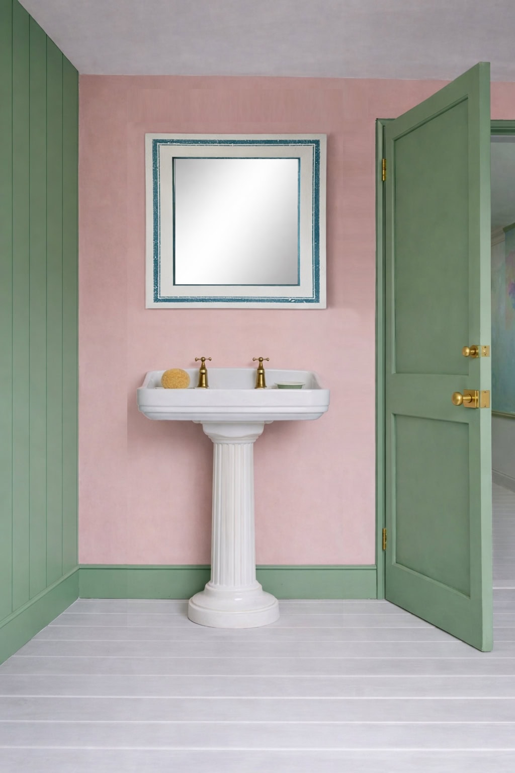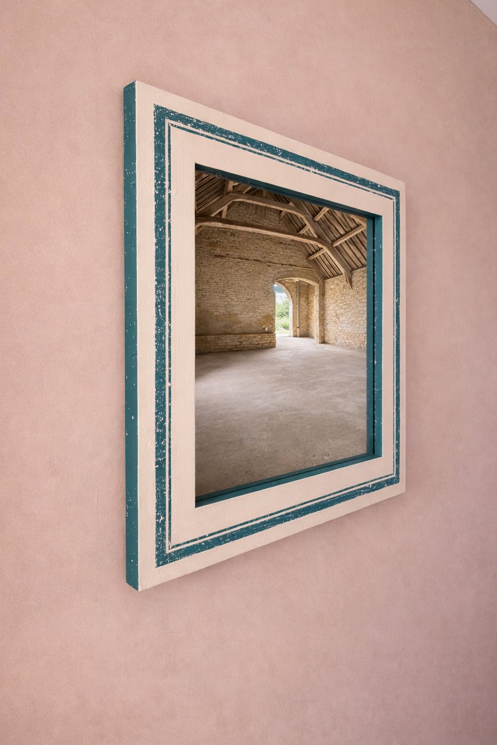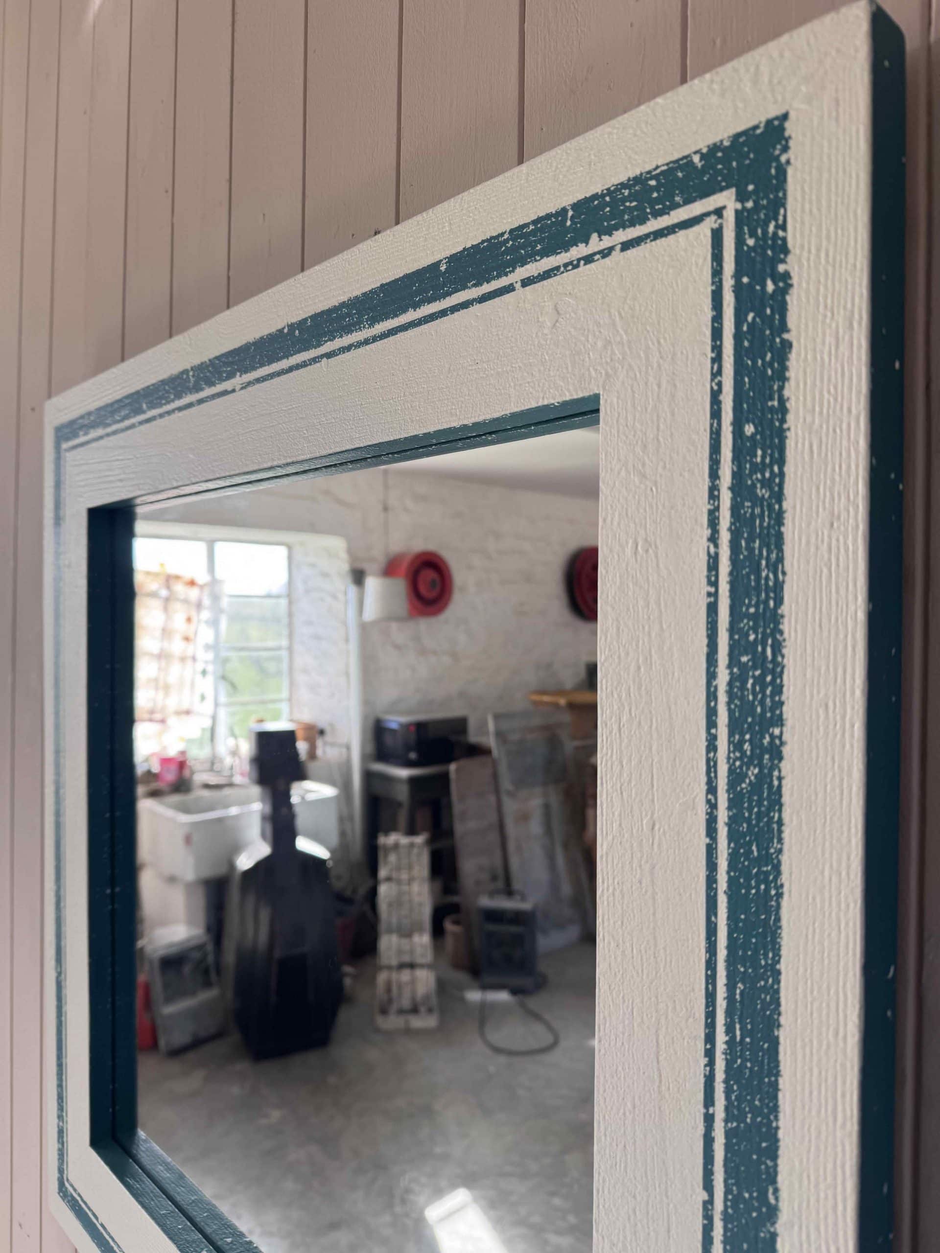 We can make bespoke mirrors to your specification, including size, colour and level of ageing, to suit your interior project.  The teal colour used here is Vardo by Farrow and Ball