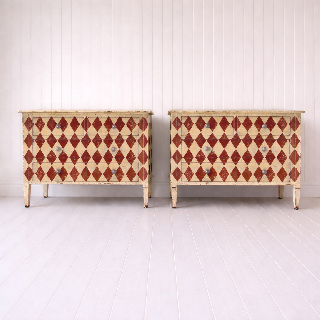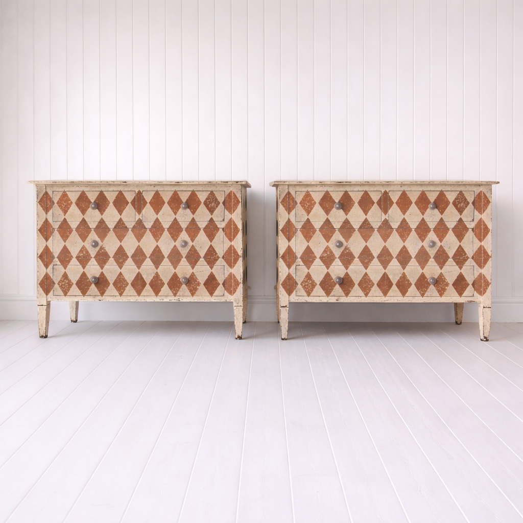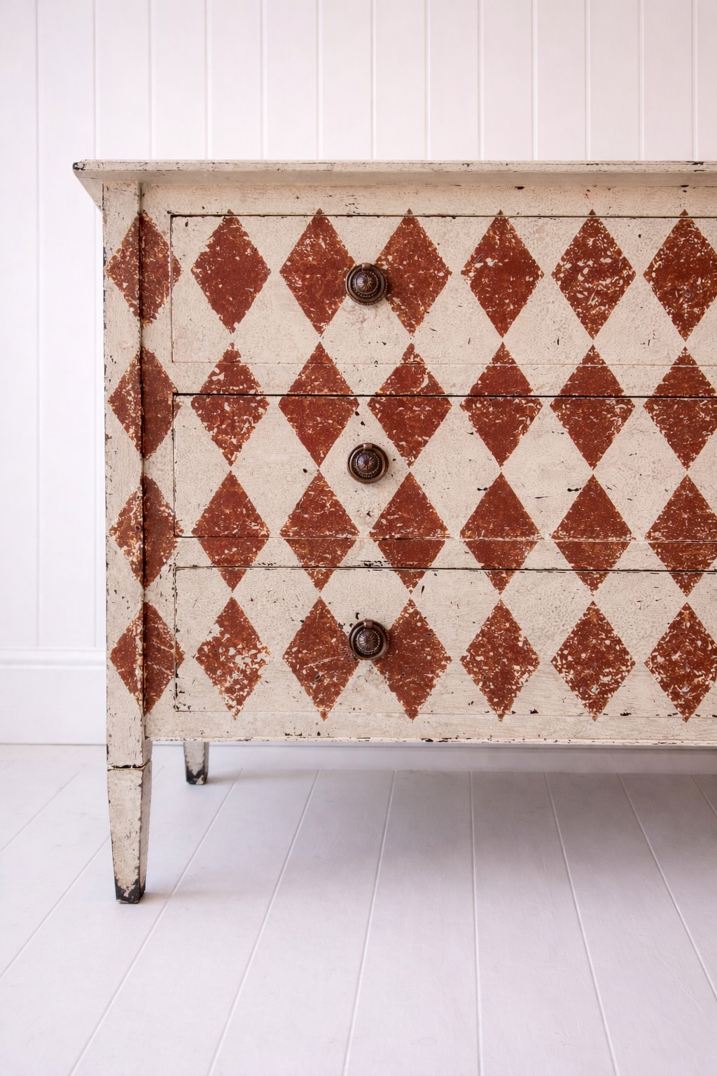 Terracotta Bespoke Harlequin Painted Chest of Drawers