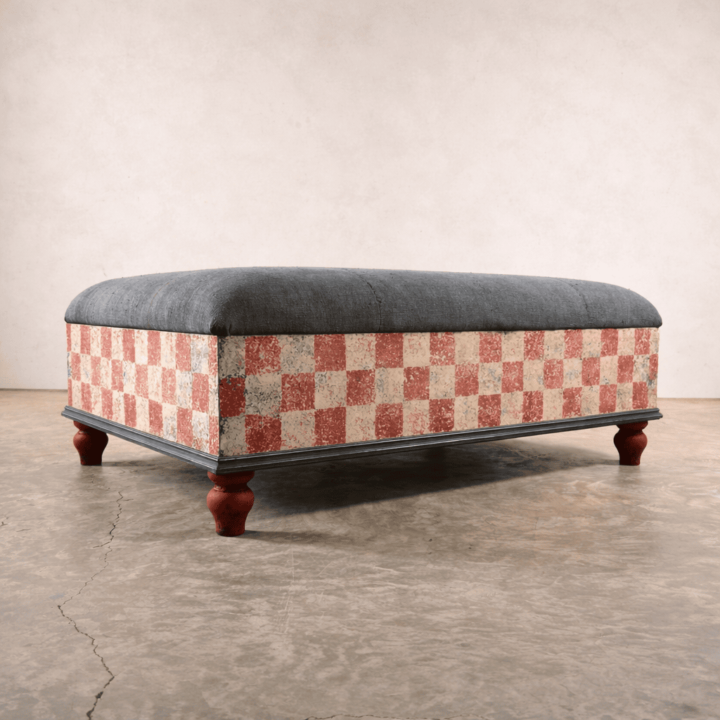 Each piece is newly made from sustainable mango wood and decorated using traditional techniques, resulting in a richly distressed surface with a soft, timeworn feel. The classic harlequin pattern brings a bold yet timeless decorative element, while the patina adds warmth and authenticity.