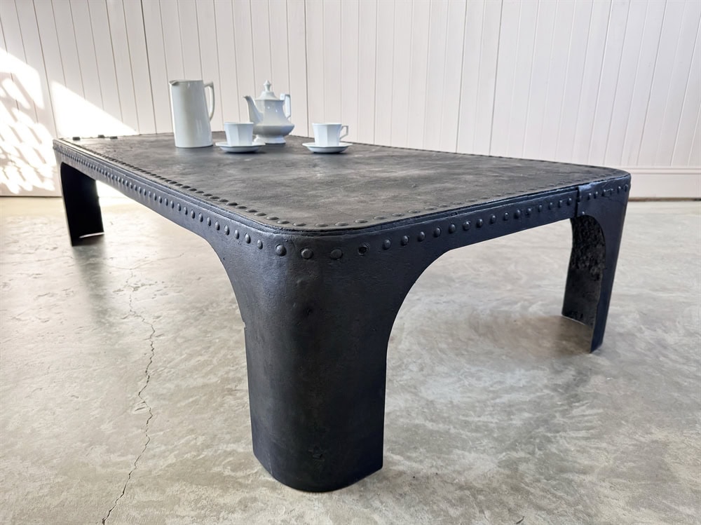 This fantastic coffee table has been made by cutting it out of a mid 19th Century riveted water tank.