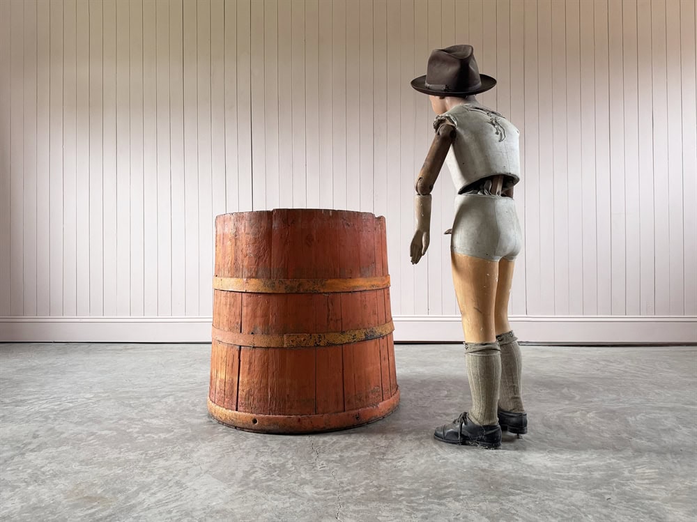 This water butt / barrel / log basket has everything going for it. Amazing colour, fantastic patina and perfect for storing logs, tennis rackets, hockey sticks, fishing rods etc.