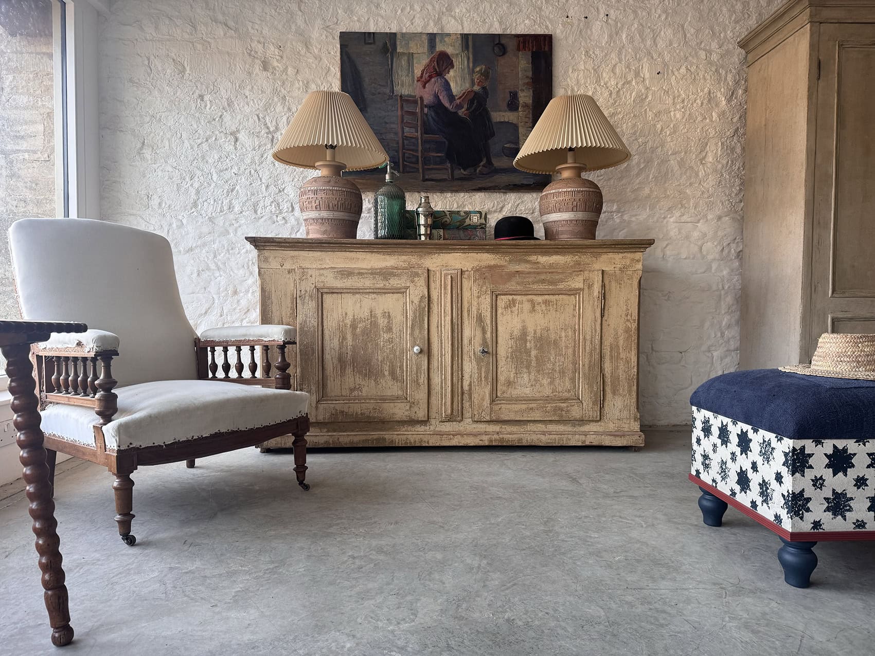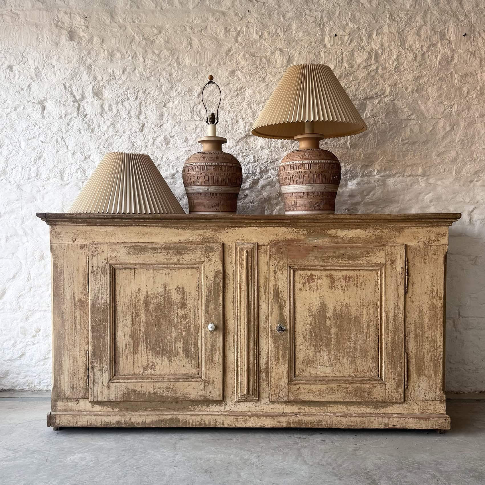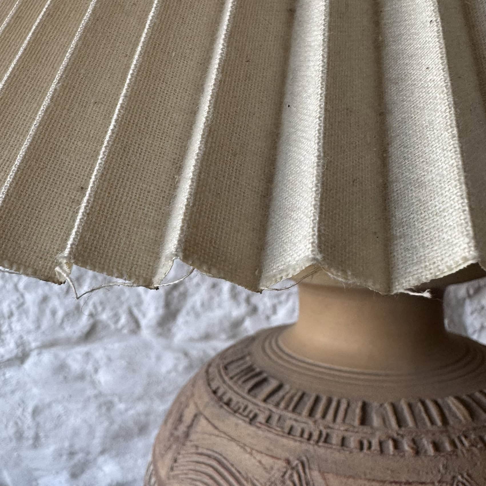 Made from cast plaster with original linen shades. Both of which are in good condition with a few marks here and there. As you can see in the pictures the shades on very close inspection are very slightly frayed around the edges.