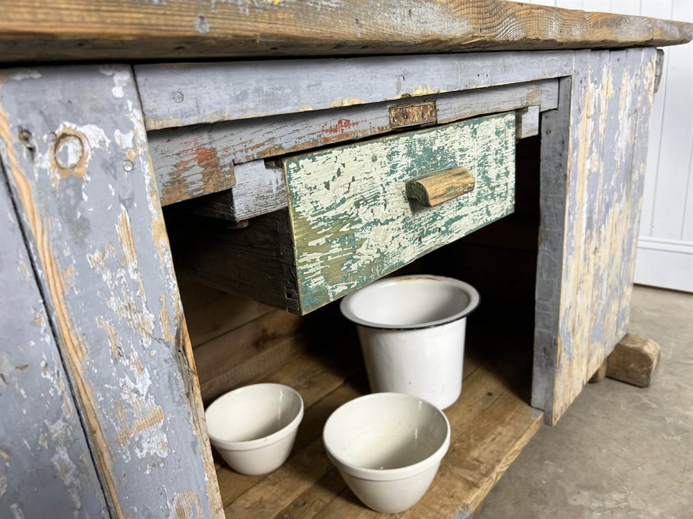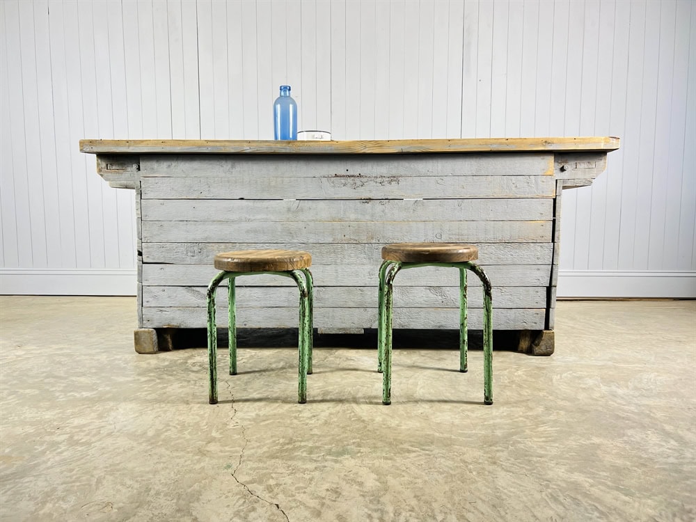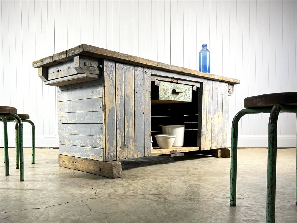 We love the colour of this 1930's factory workbench which was sourced in the Czech Republic.