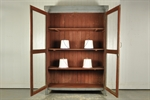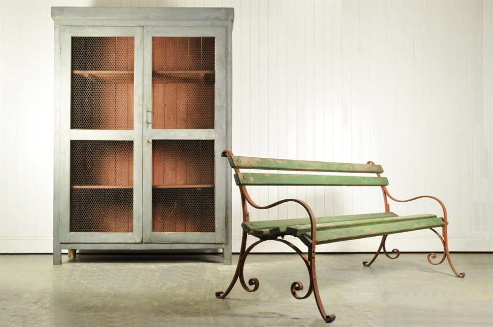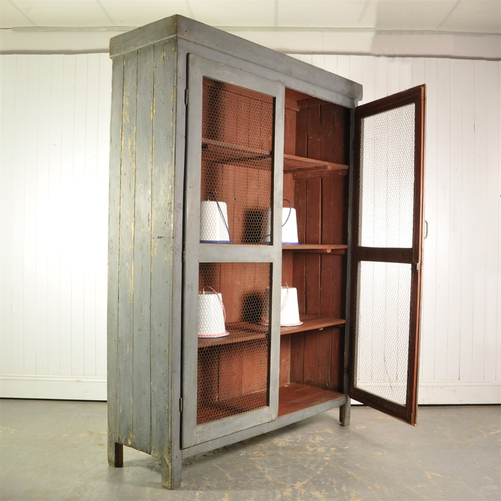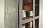 We love the colours of this wire fronted Linen cupboard, the contrast between both the faded blues and reds.