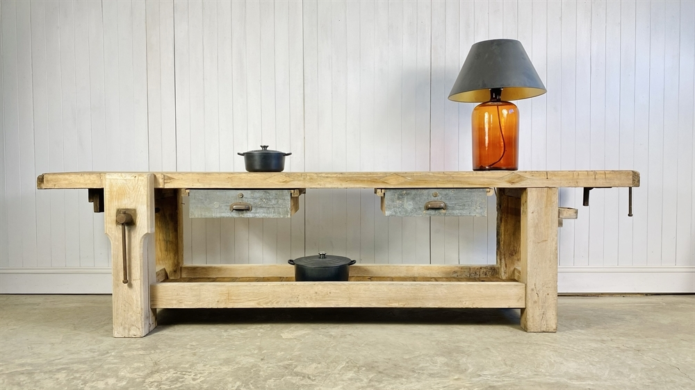 Sourced in the South of France this impressive workbench is made from oak and elm all naturally sun bleached.