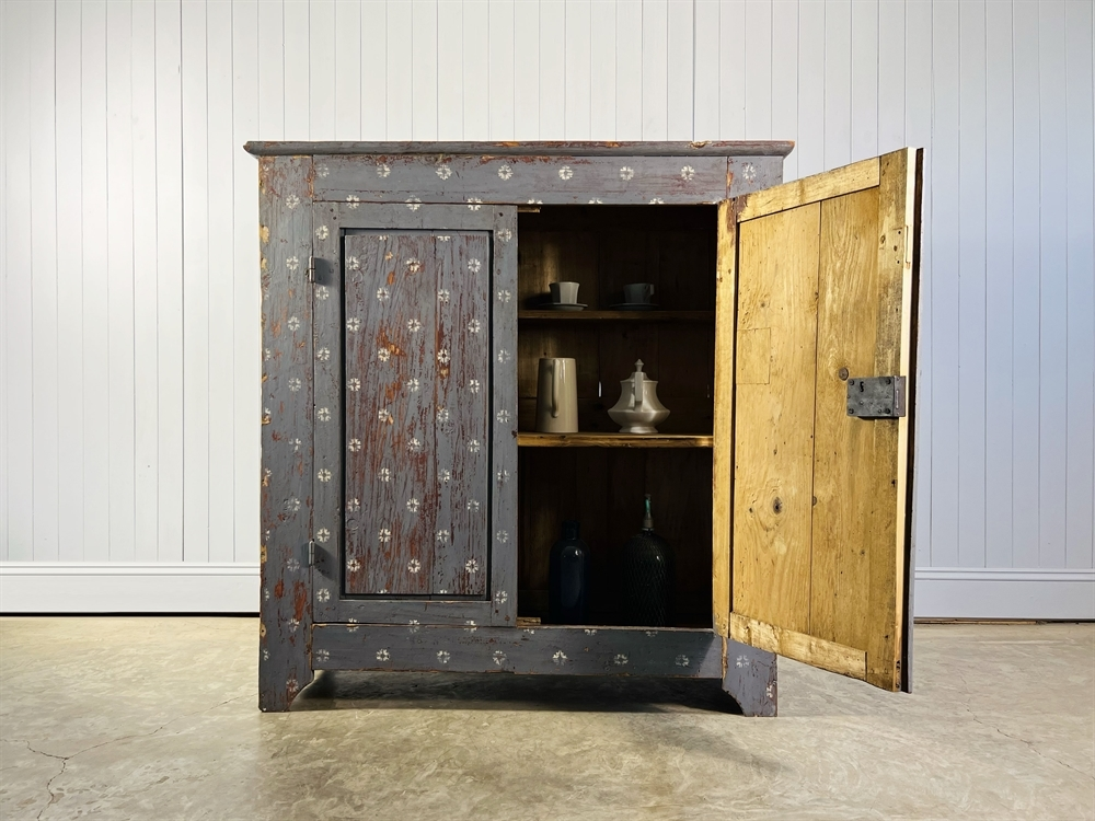 We have added the off white pattern detail to this lovely authentic antique French cupboard.