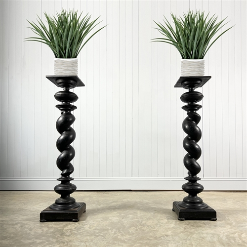 These 19th Century columns or plinths are carved and painted. Lovely original patina and perfect for plants, candles or even a sculpture.