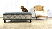 The inspiration for these benches came from an antique Italian Ottoman which we bought and sold with a similar construction.