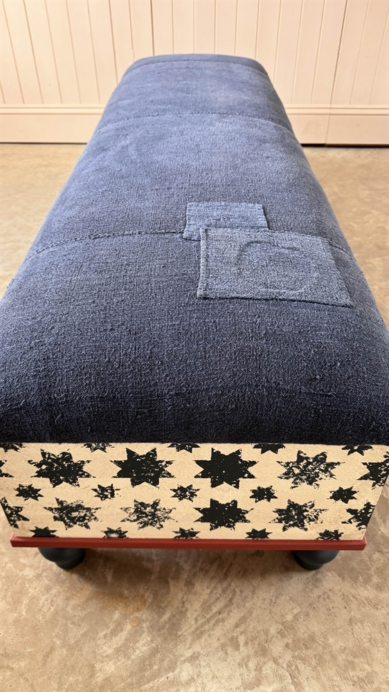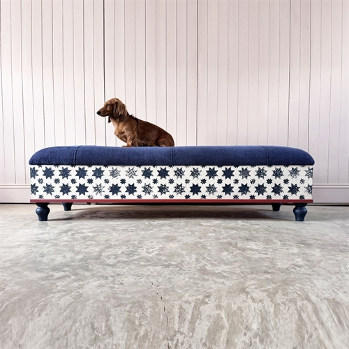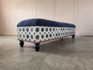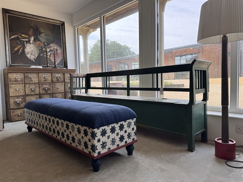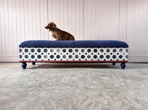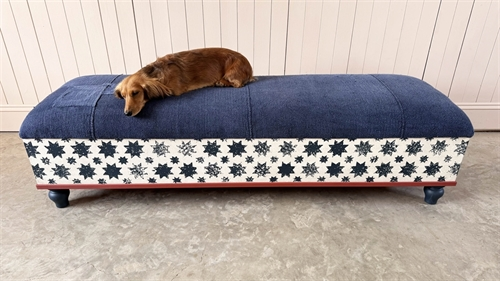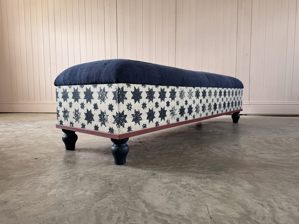 The inspiration for these benches came from an antique Italian Ottoman which we bought and sold with a similar construction.