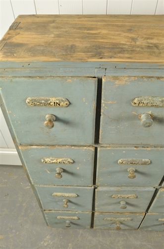 We believe that this would have been part of a large wall of drawers in a French Pharmacy circa 1900.