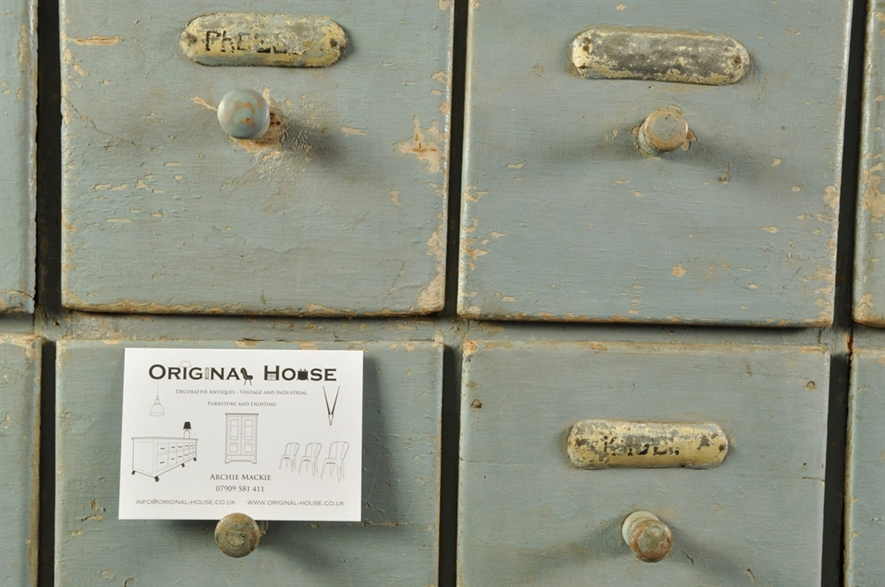 Both the original blue paint and the labels have significant natural distressing - creating this wonderful look.