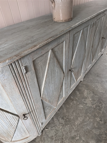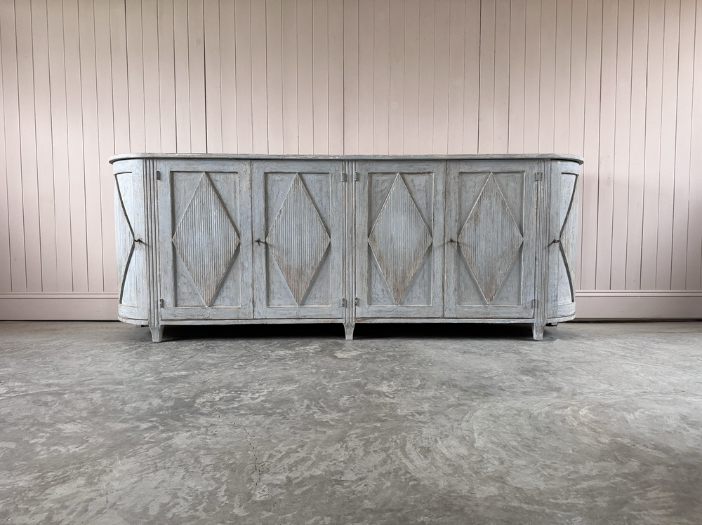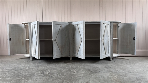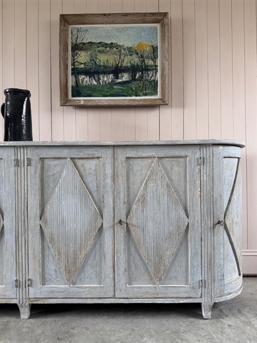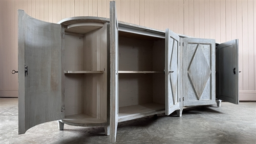 The paint finish and ageing is a real artisan skill and this lends itself very well to this well proportioned sideboard with reeded and curved doors.