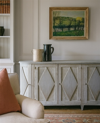 This wonderful painted Swedish style sideboard is newly made using reclaimed materials.
