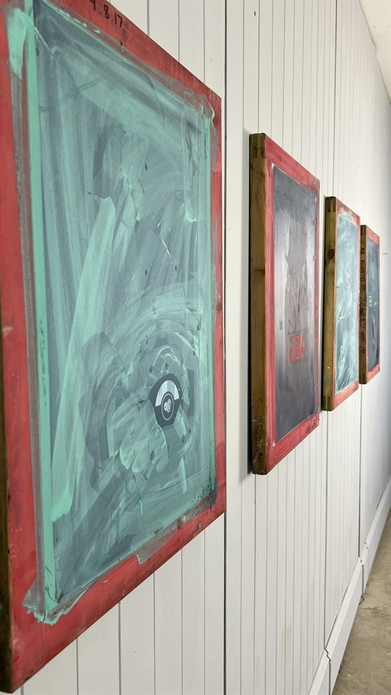 We took the opportunity to buy a stash of these fun printing screens from a small printers in Dorset. They were printing t-shirts and skateboards.