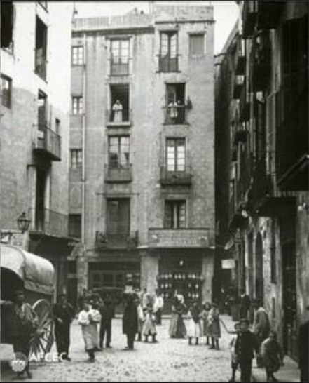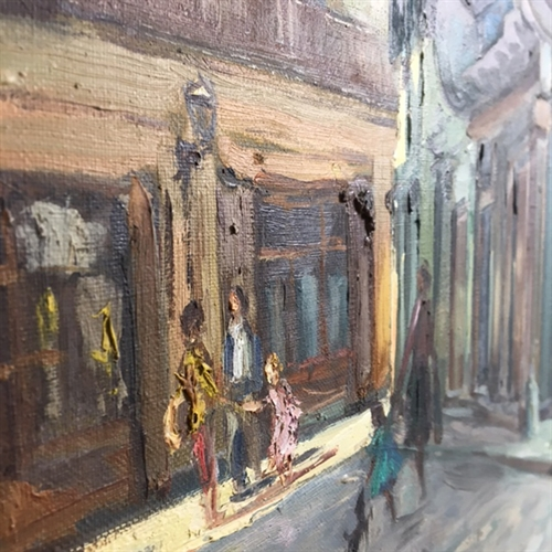 We love the way the artist has portrayed the light and shadow and used small intense colour to bring life to this cheery Barcelona scene.