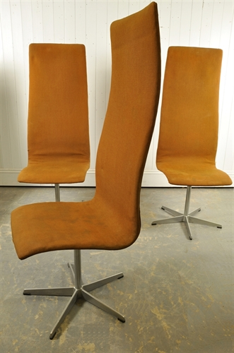 These were originally designed for the dining halls of St Catherines Collage in Oxford. The idea being that the Dons would sit on these taller chairs, looking more prestigious than their students. Arne Jacobsen was one of the most influential designers in Danish Modernism.