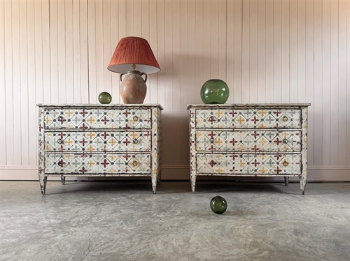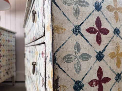 These late 19th Century chest of drawers have been expertly hand painted, rather than stencilled by our friend Jose in Catalonia.