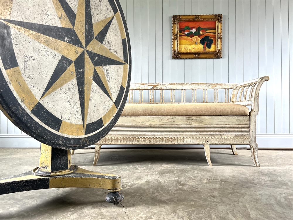 We love the unusual shape of the legs and arms on this beautiful 19th century Swedish Sofa / daybed.