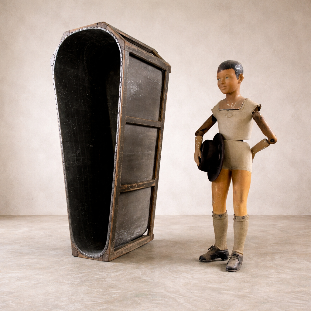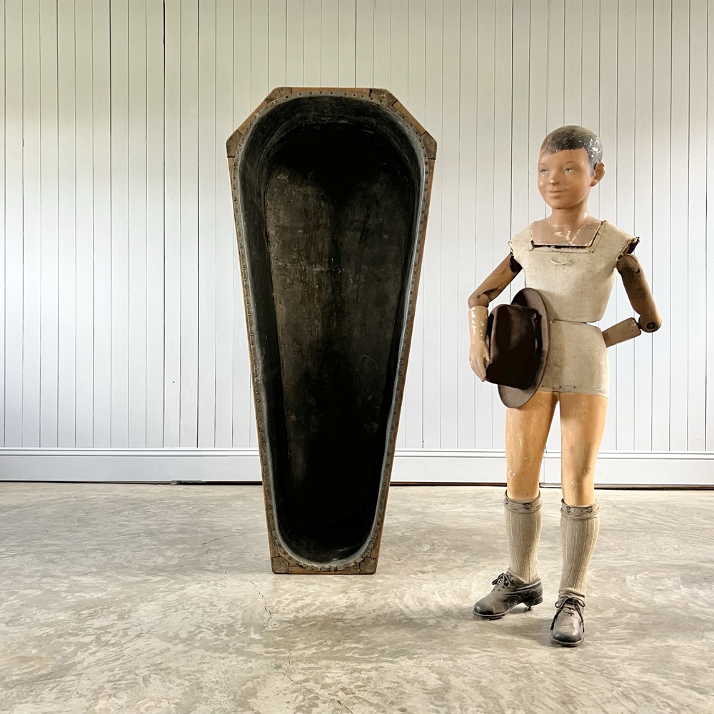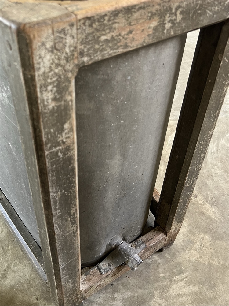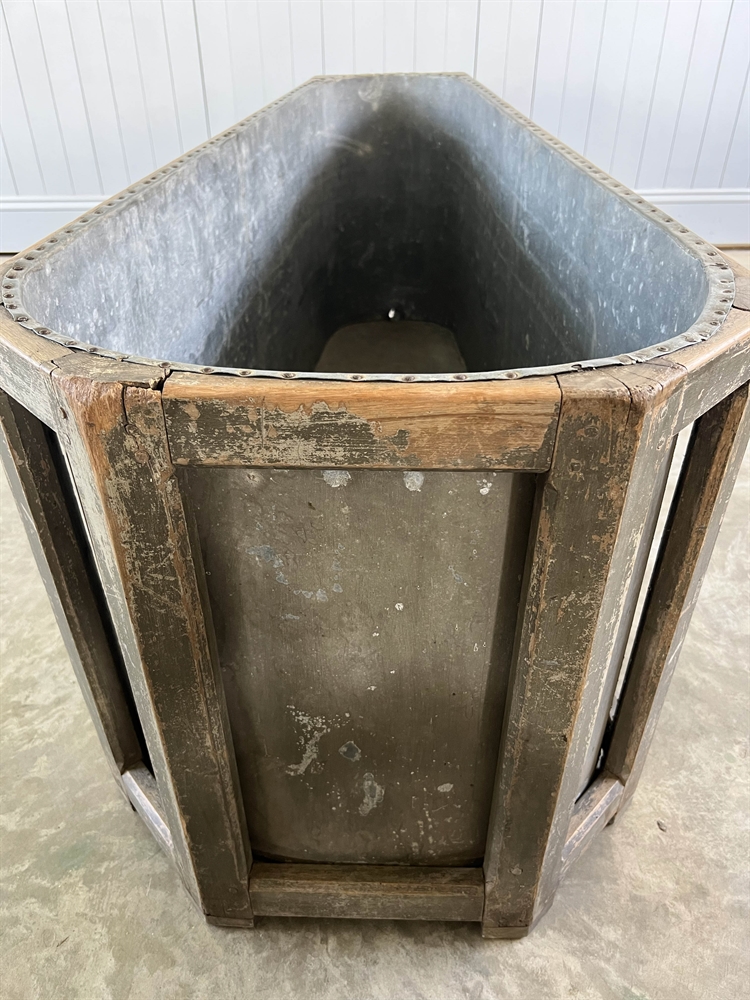 This is a very unusual zinc bath with a beautifully made oak frame.  Sourced from the Ardennes in Northern France.