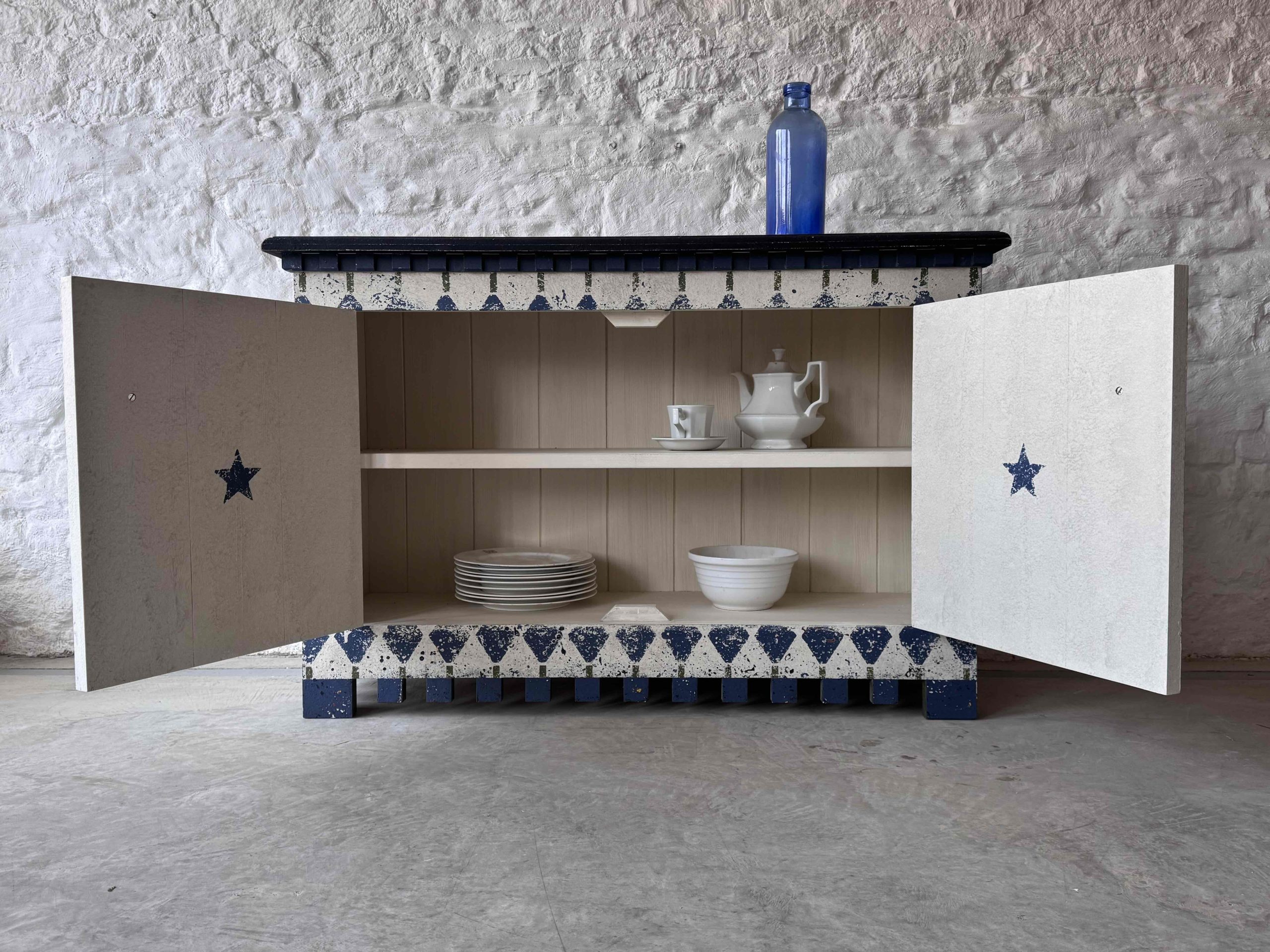 Based on an Italian design we are now having these cupboards made locally in the Cotswolds and painting the designs in-house.