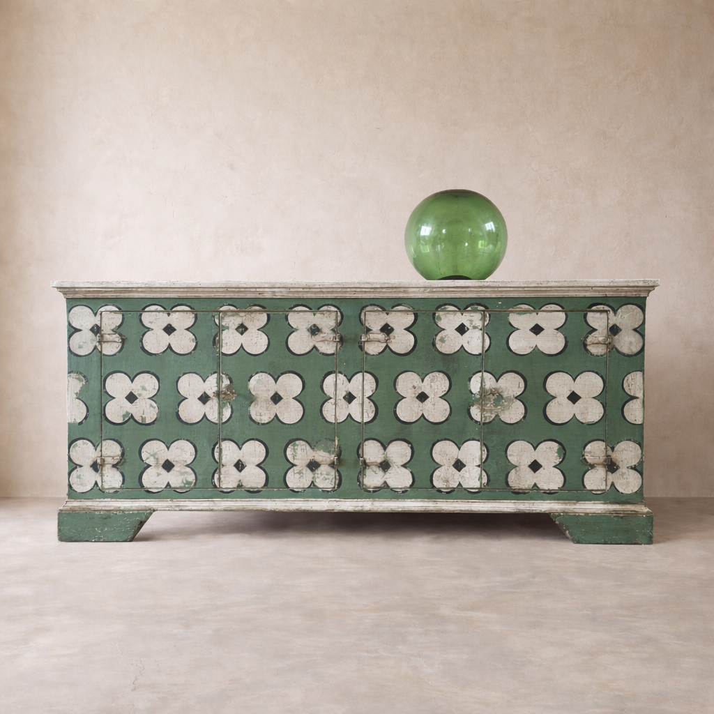 The sideboard was designed with 4 doors rather than 3 and with a stepped clover repeat.