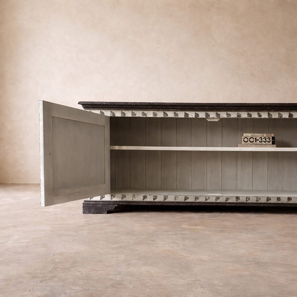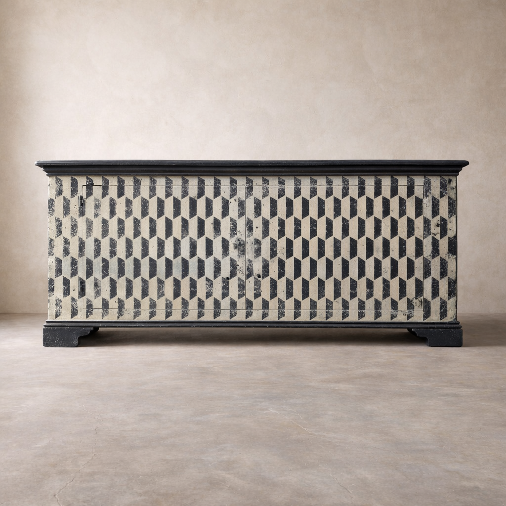 This decorative chevron painted sideboard was a commission. Painted in Panther by Frenchic – which is very nearly black..