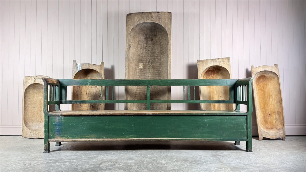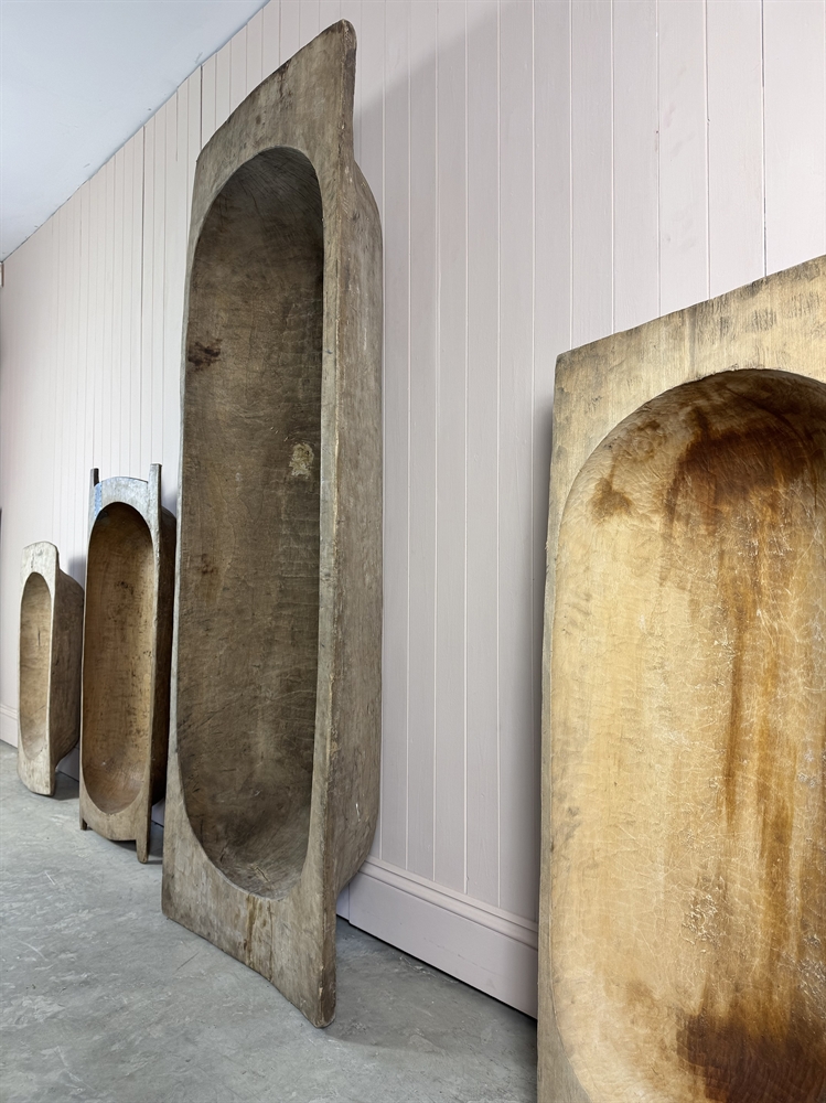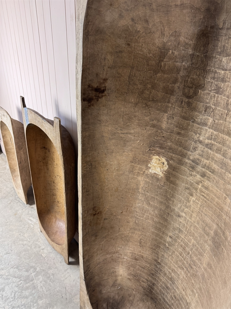 These hand carved wooden bowls were used for kneading bread throughout Eastern Europe. Early 20th Century.