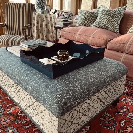 The inspiration for these footstools came from an antique Italian Ottoman which we bought and sold with a similar construction.
