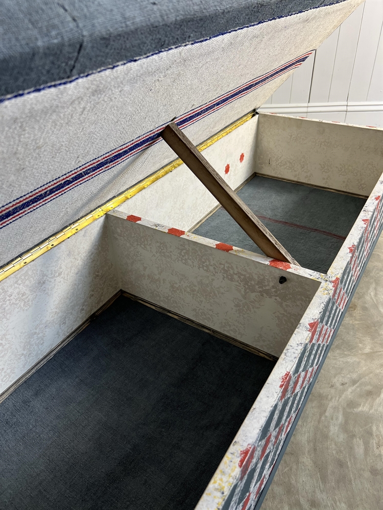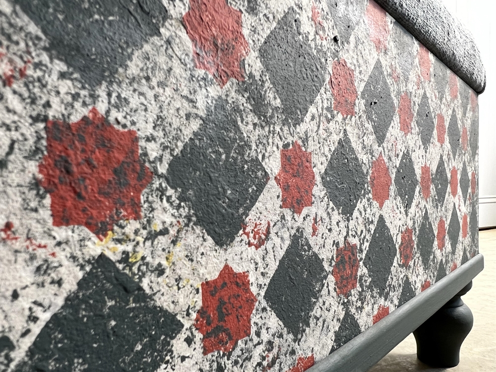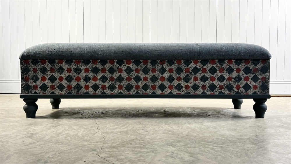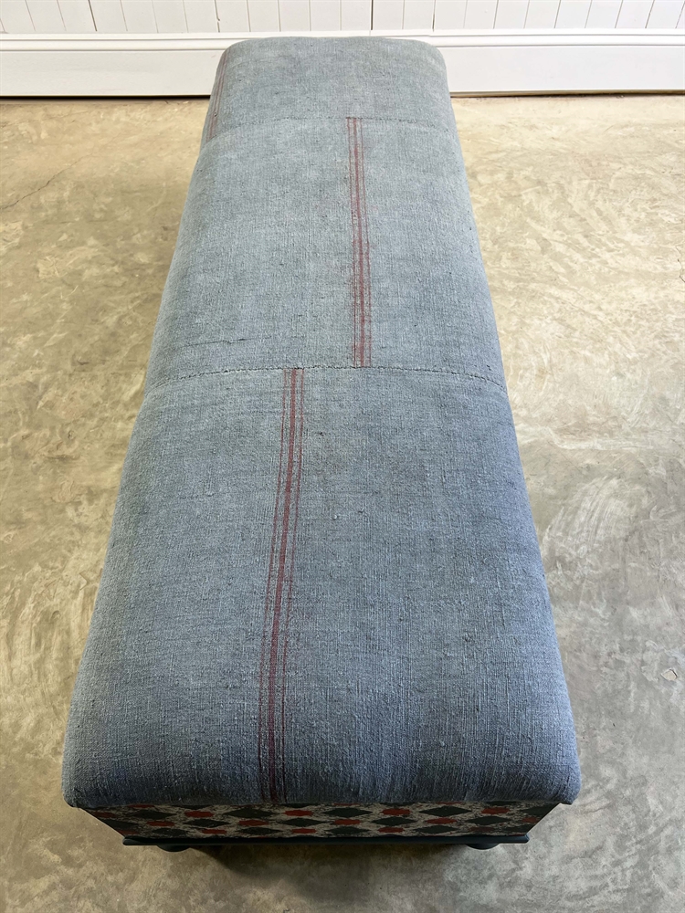 Based on an Italian decorative painted ottoman, the Grain Sack footstool / bench is handmade and painted in-house in the Cotswolds.