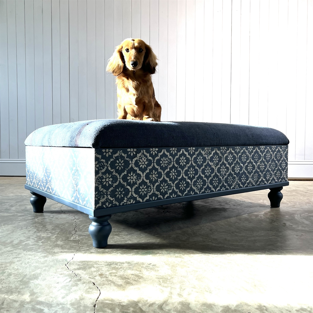 The inspiration for these benches came from an antique Italian Ottoman which we bought and sold with a similar construction.