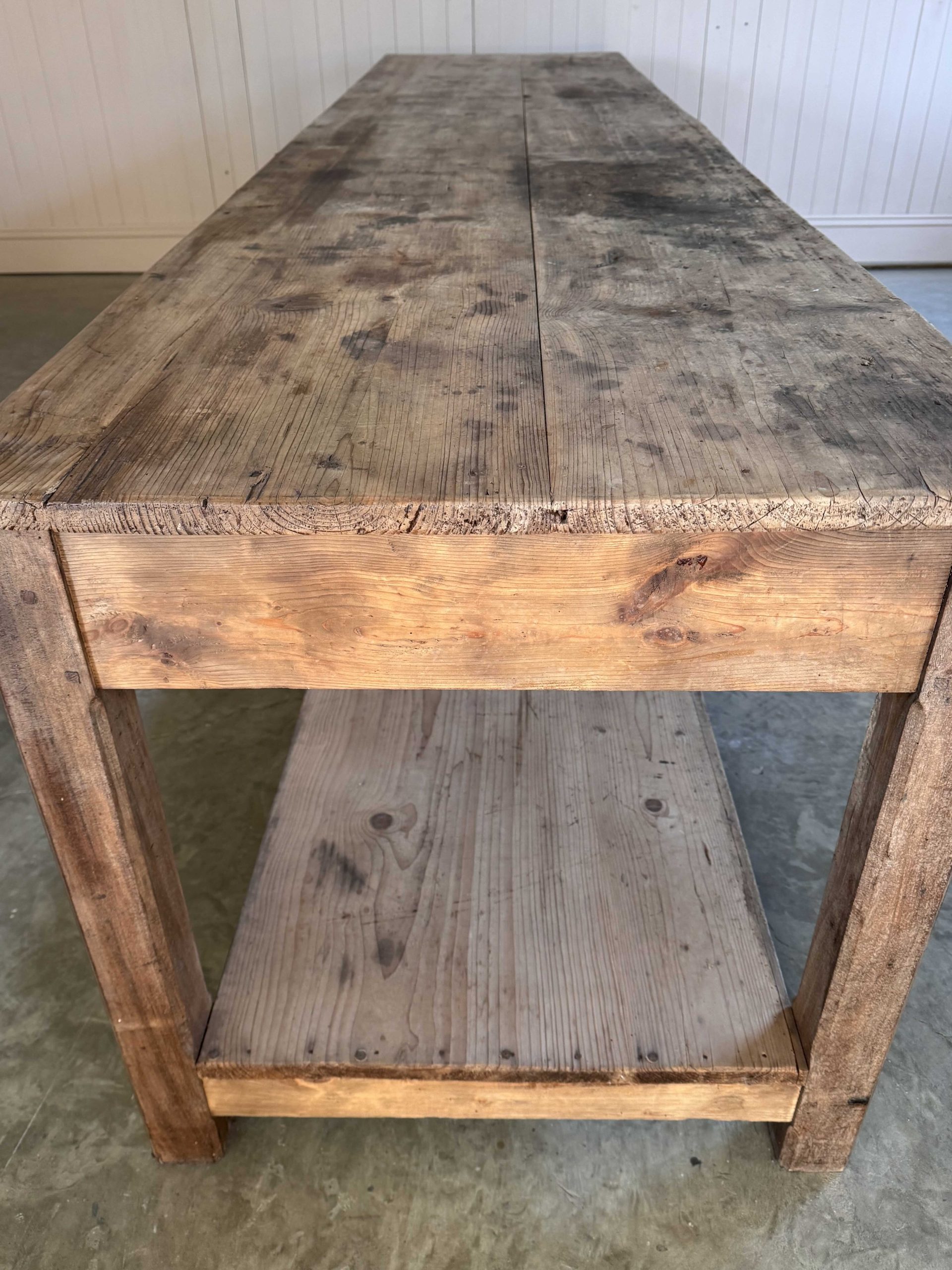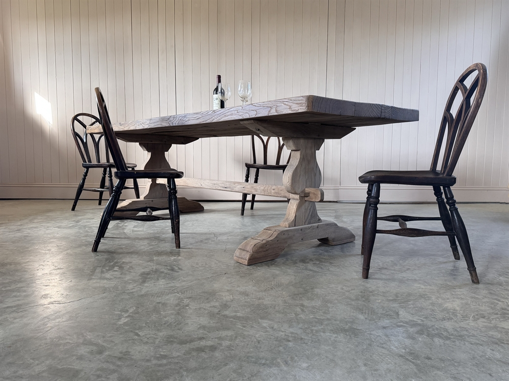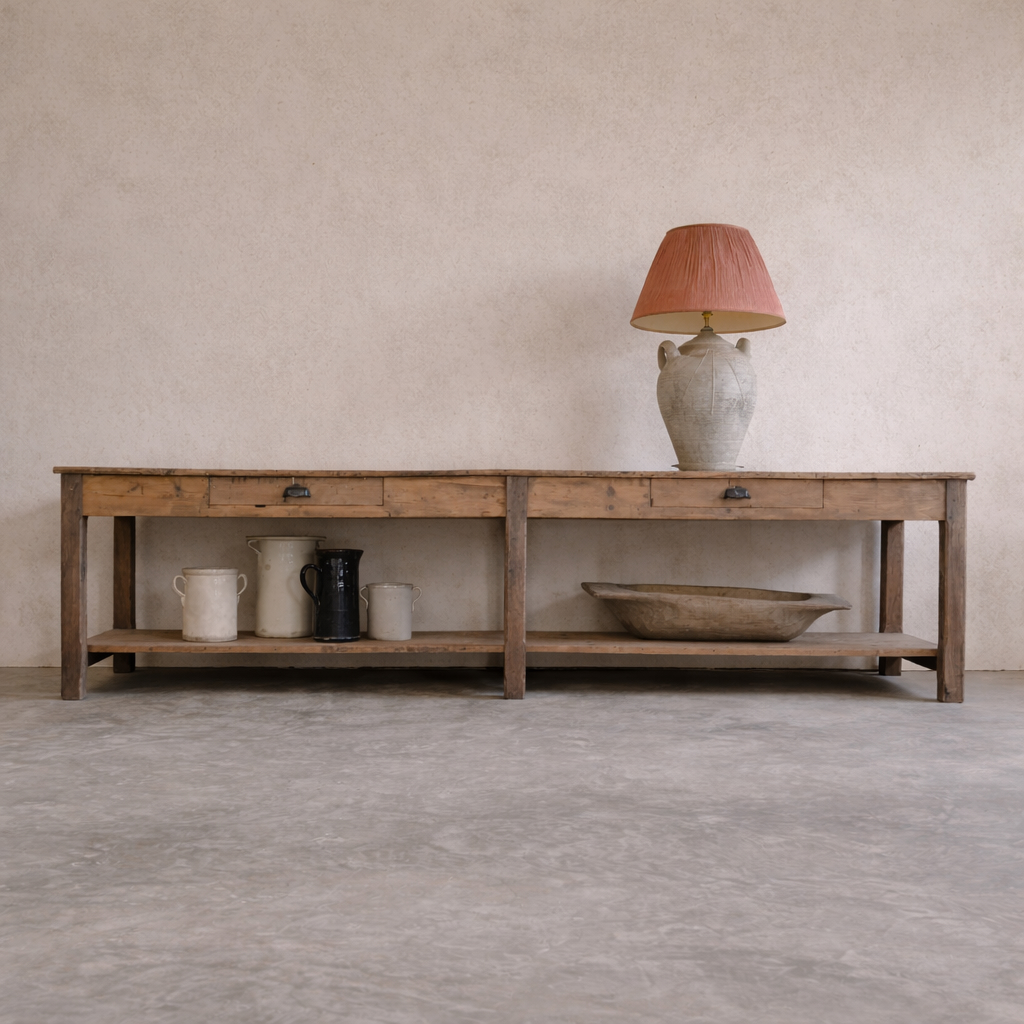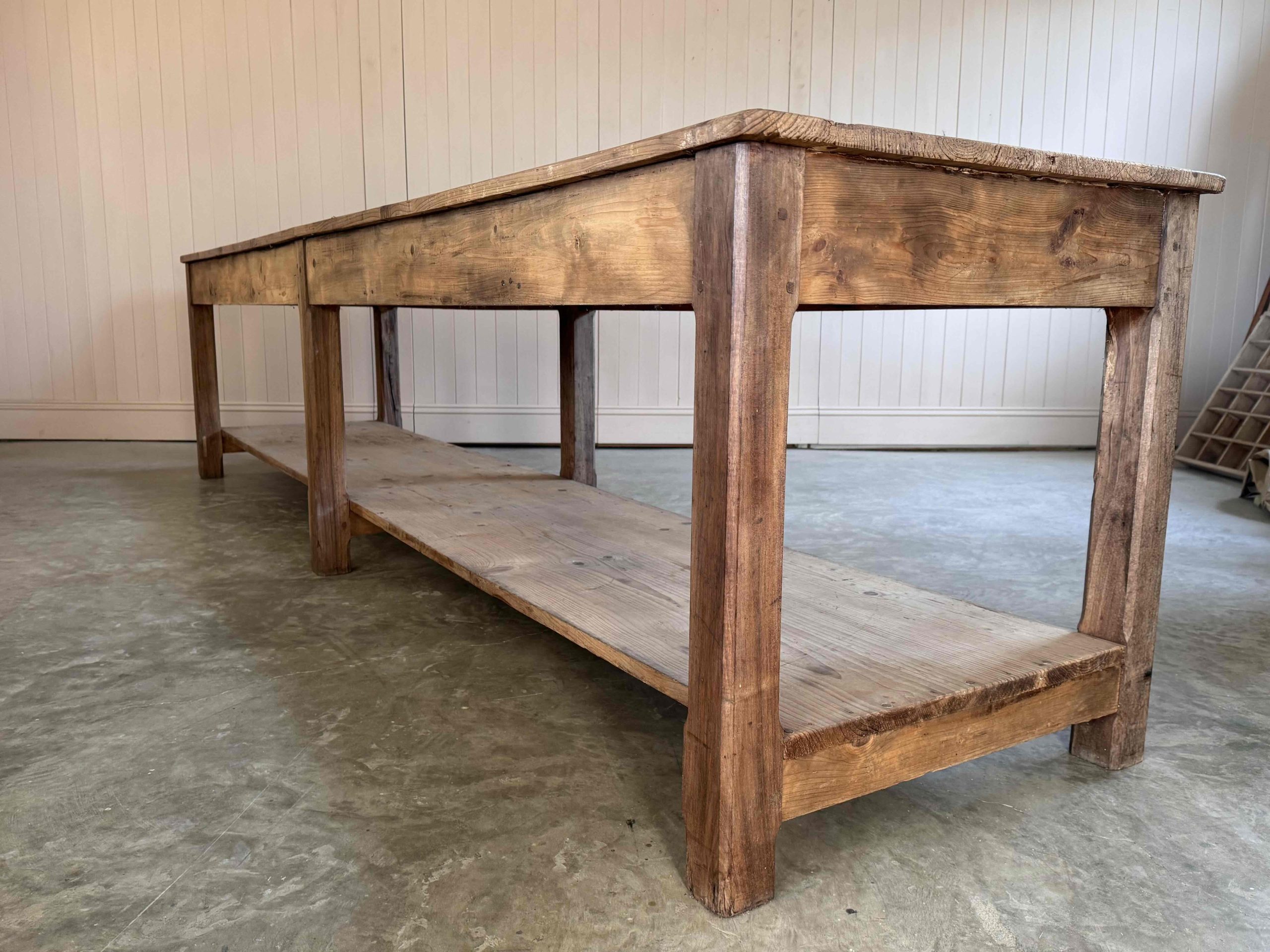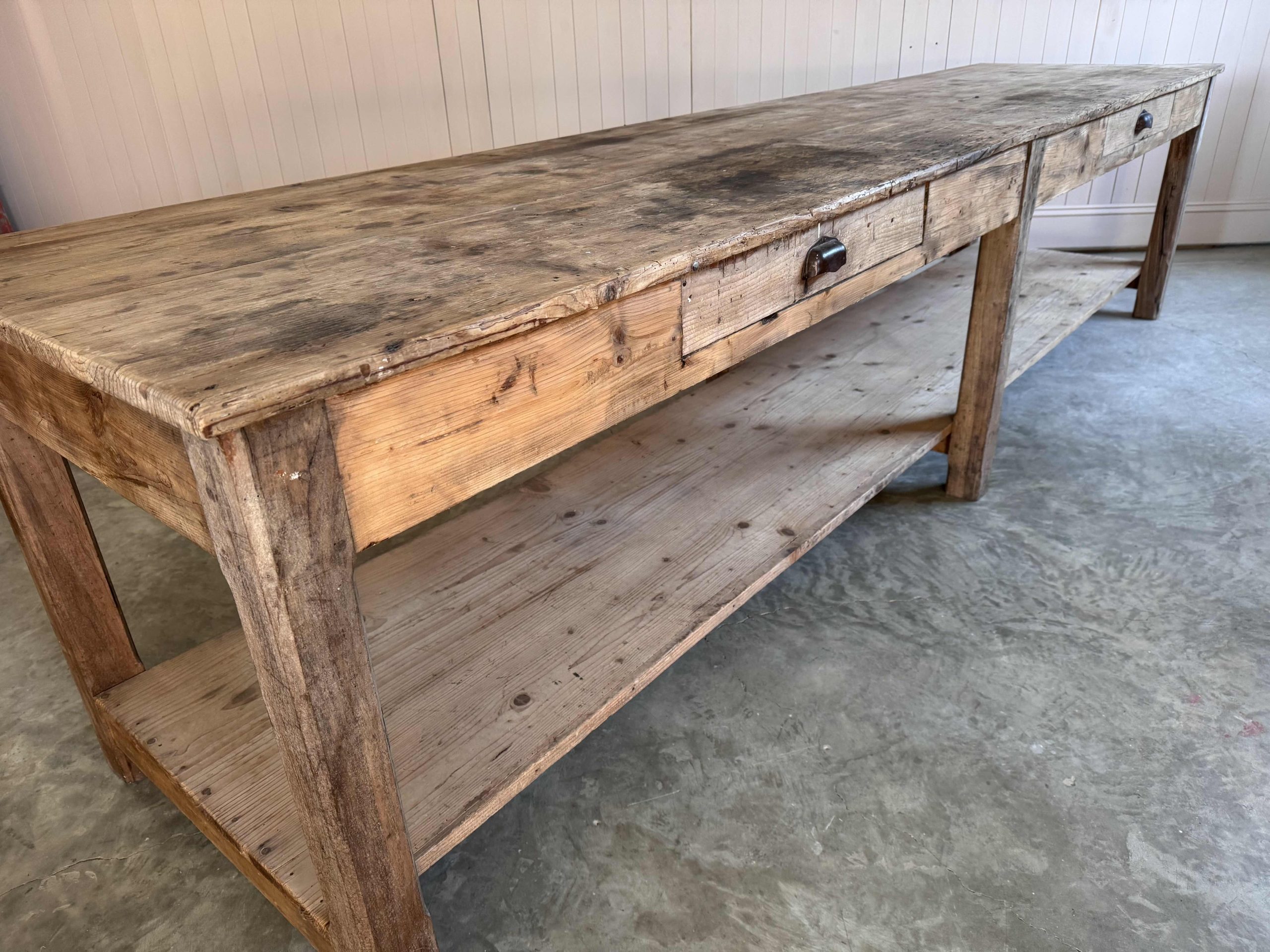 We sourced this beast of an industrial table from a textile factory in Lille France.