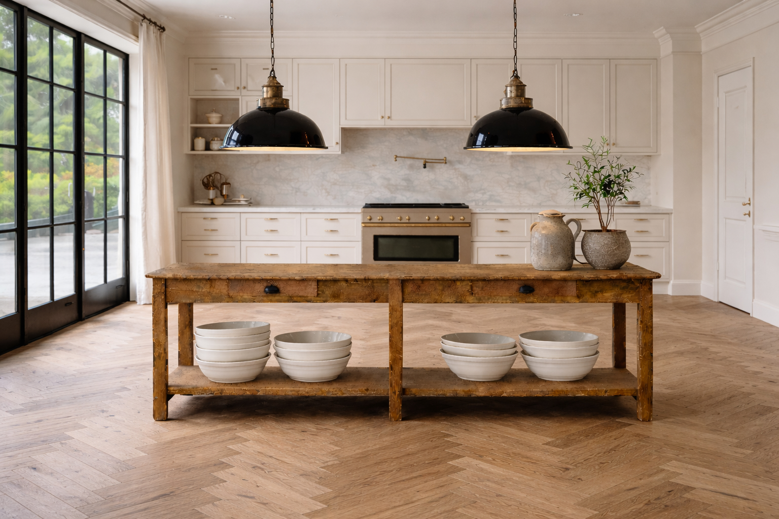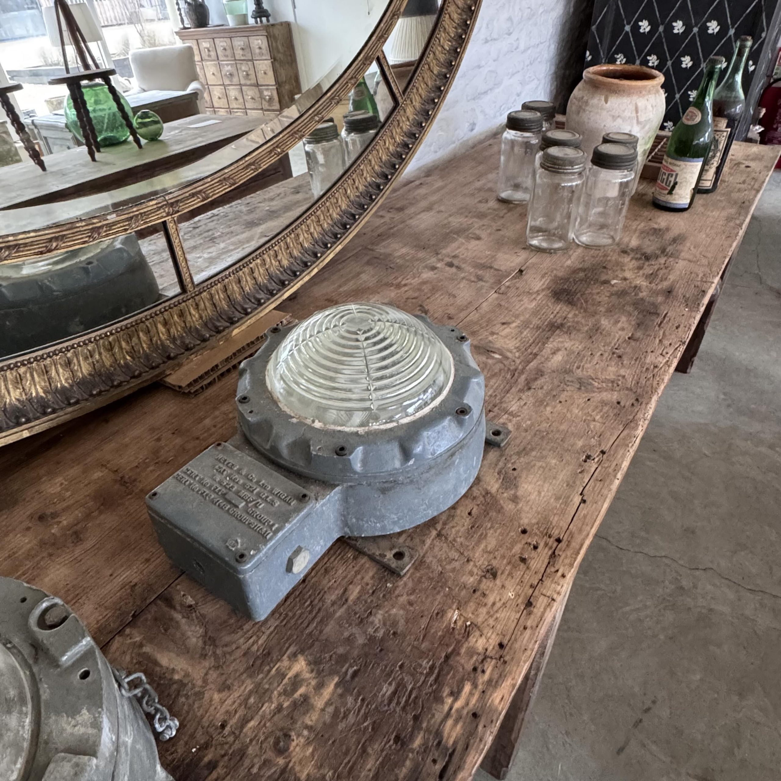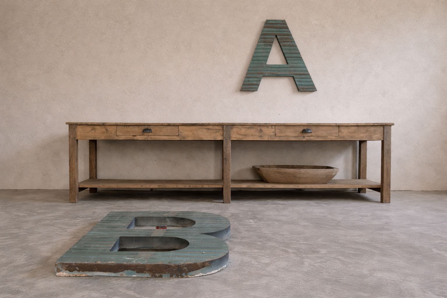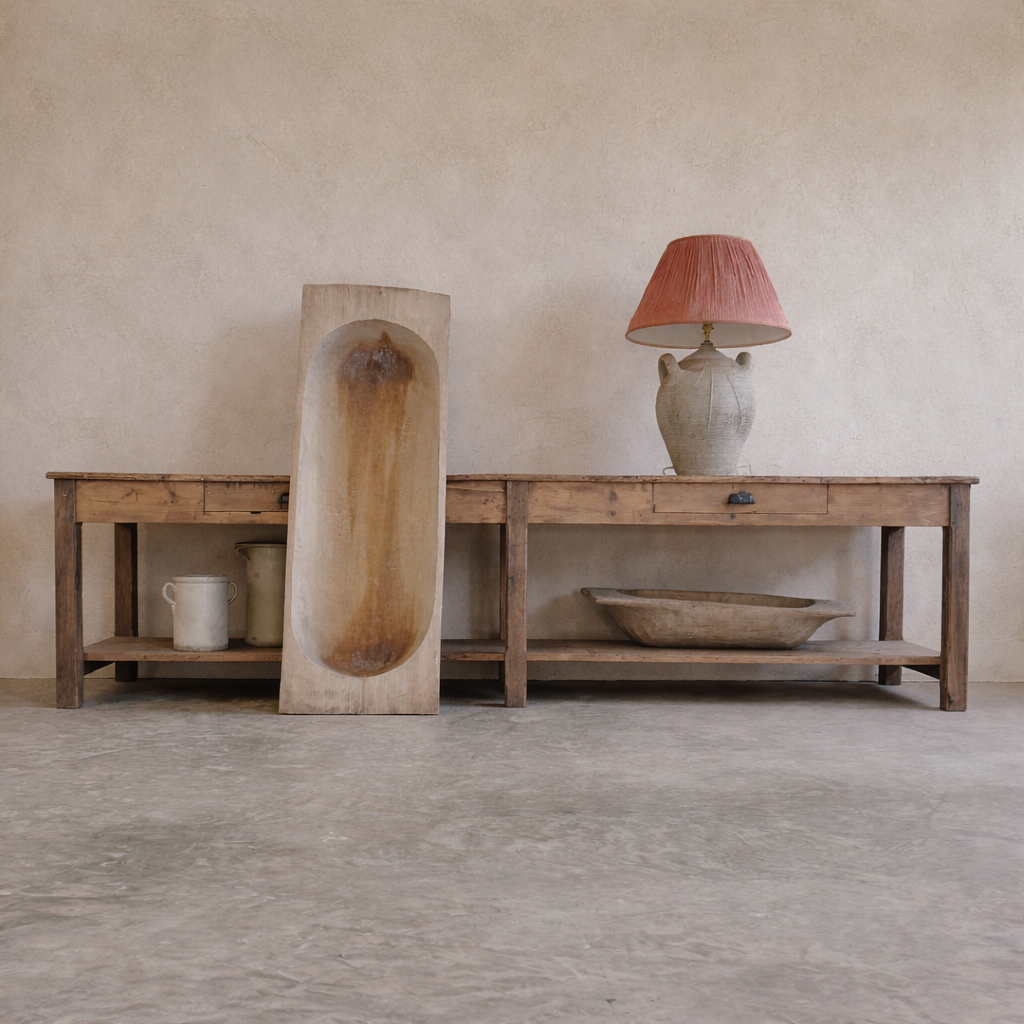 We sourced this beast of an industrial table from a textile factory in Lille France.