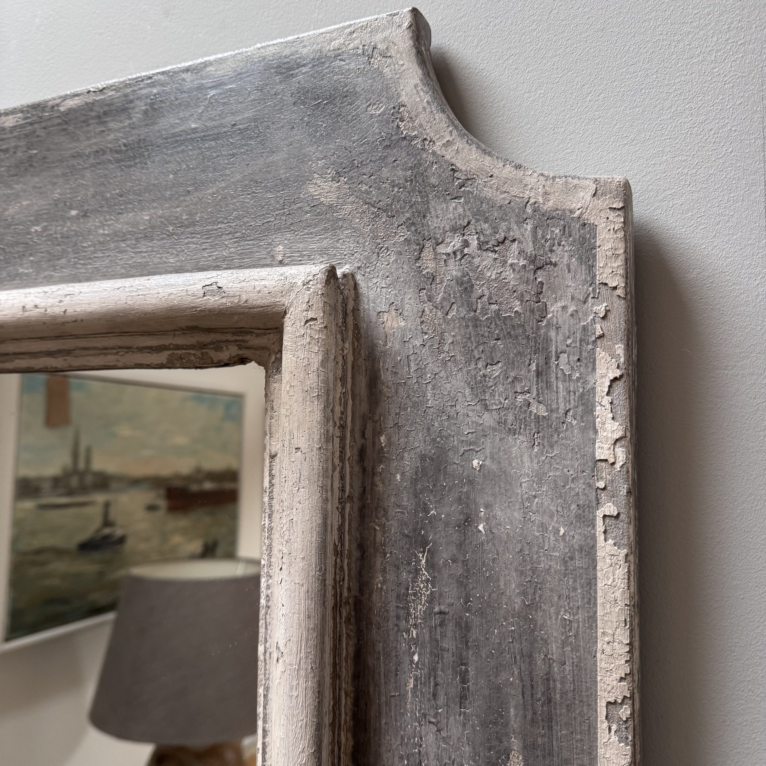 This large mirror has been put together using 18th Century Architrave and repainted by our Friend Giorgio near Turin. Amazingly produced crackled paint and a lovely size.
